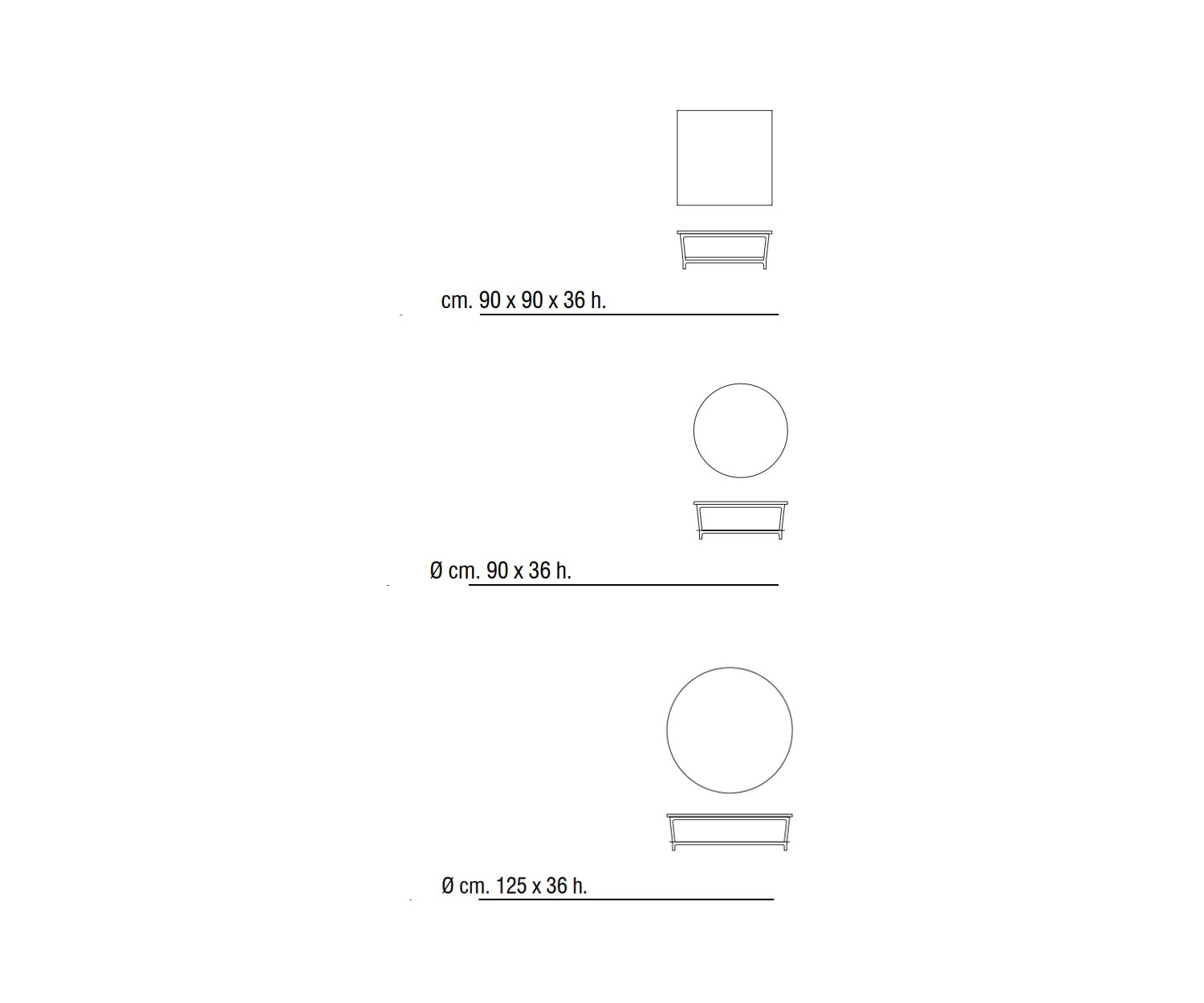 The Tab designer coffee table from Marelli is available in 8 sizes. Available in round or square: