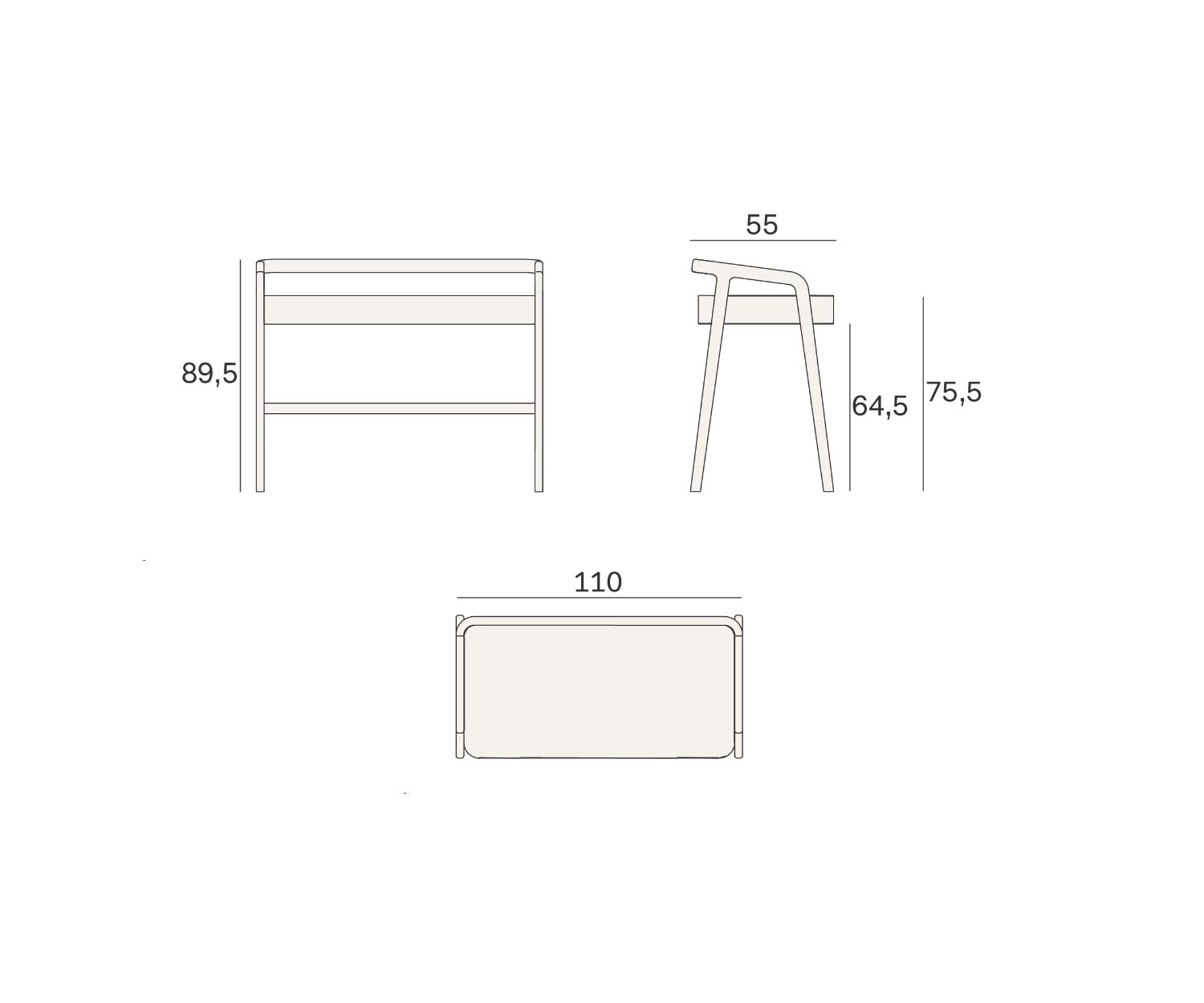 External dimensions: W 110 cm / H 89.5 cm / D 55 cm