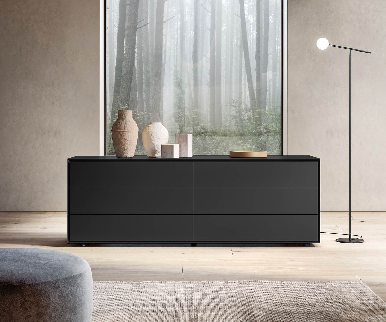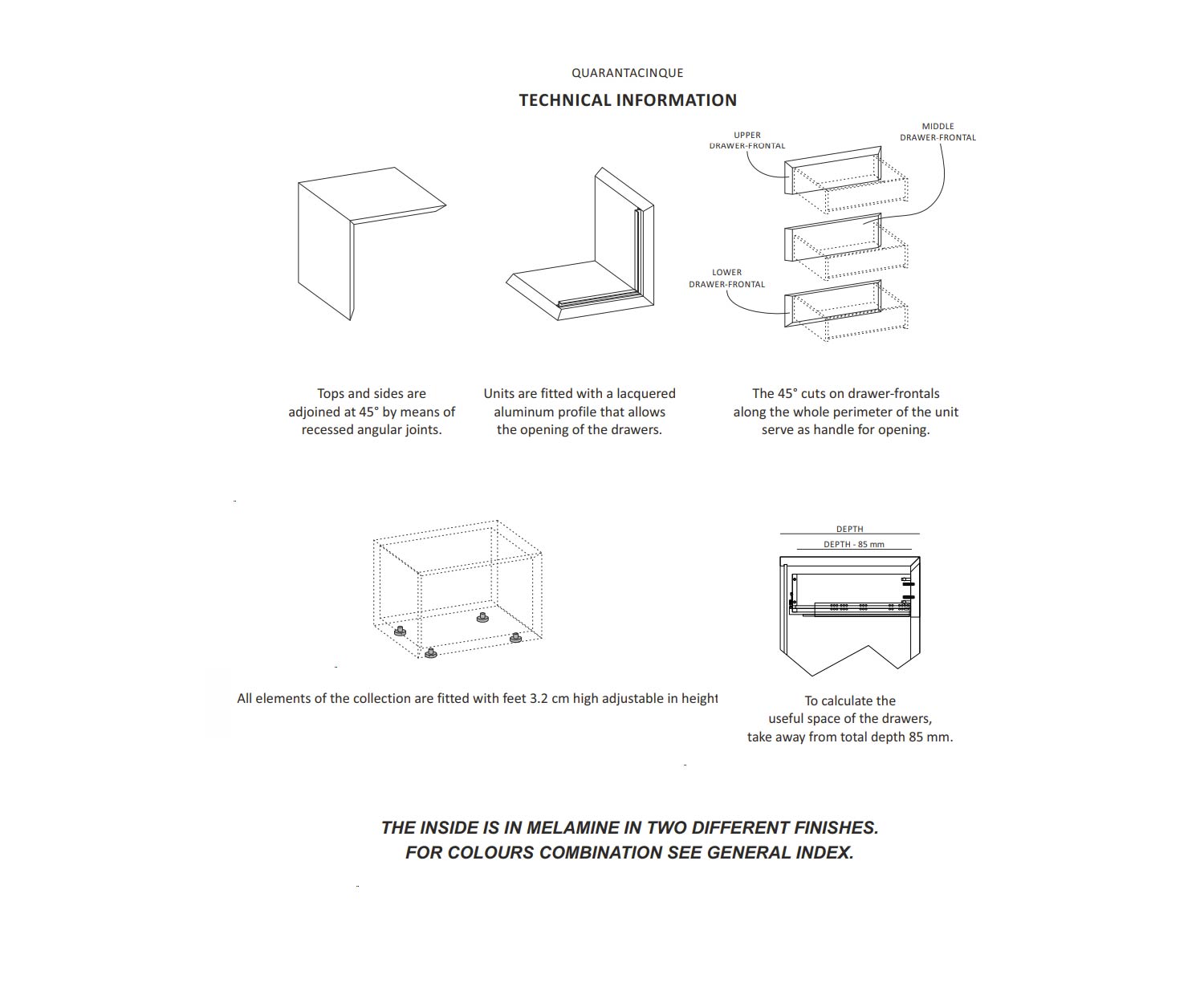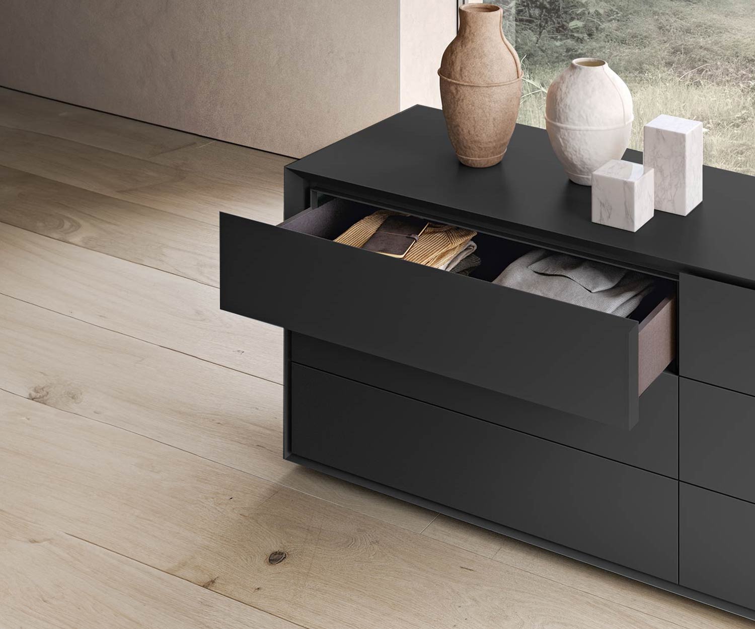 Die Quarantacinque Kollektion bietet eine Vielzahl von Größen, die sich flexibel an unterschiedliche Bedürfnisse anpassen lassen – sei es als Kommode, Nachtkommode oder Hochkommode. Ideal für Schlafräume, die Wert auf sowohl Stil als auch Funktionalität legen.