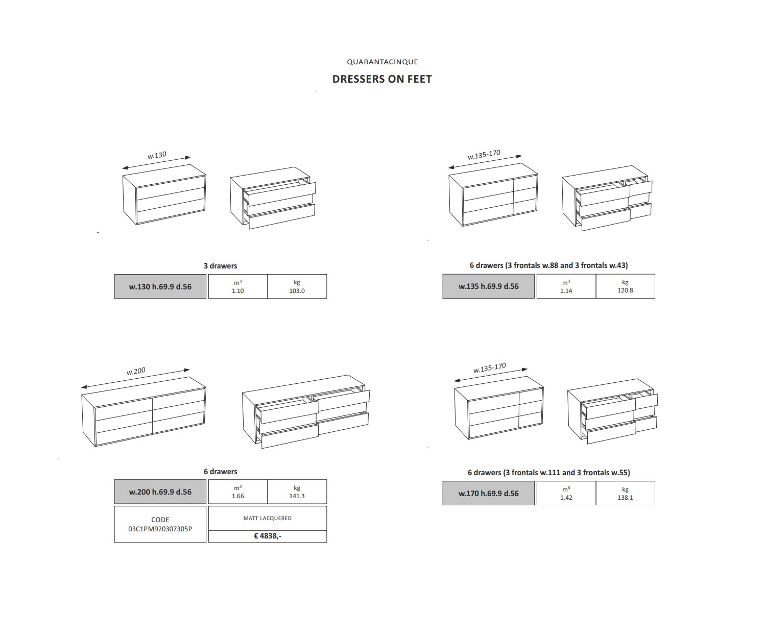 Die Capo d´Opera Quarantacinque Design Kommode ist erhältlich mit den Maßen: