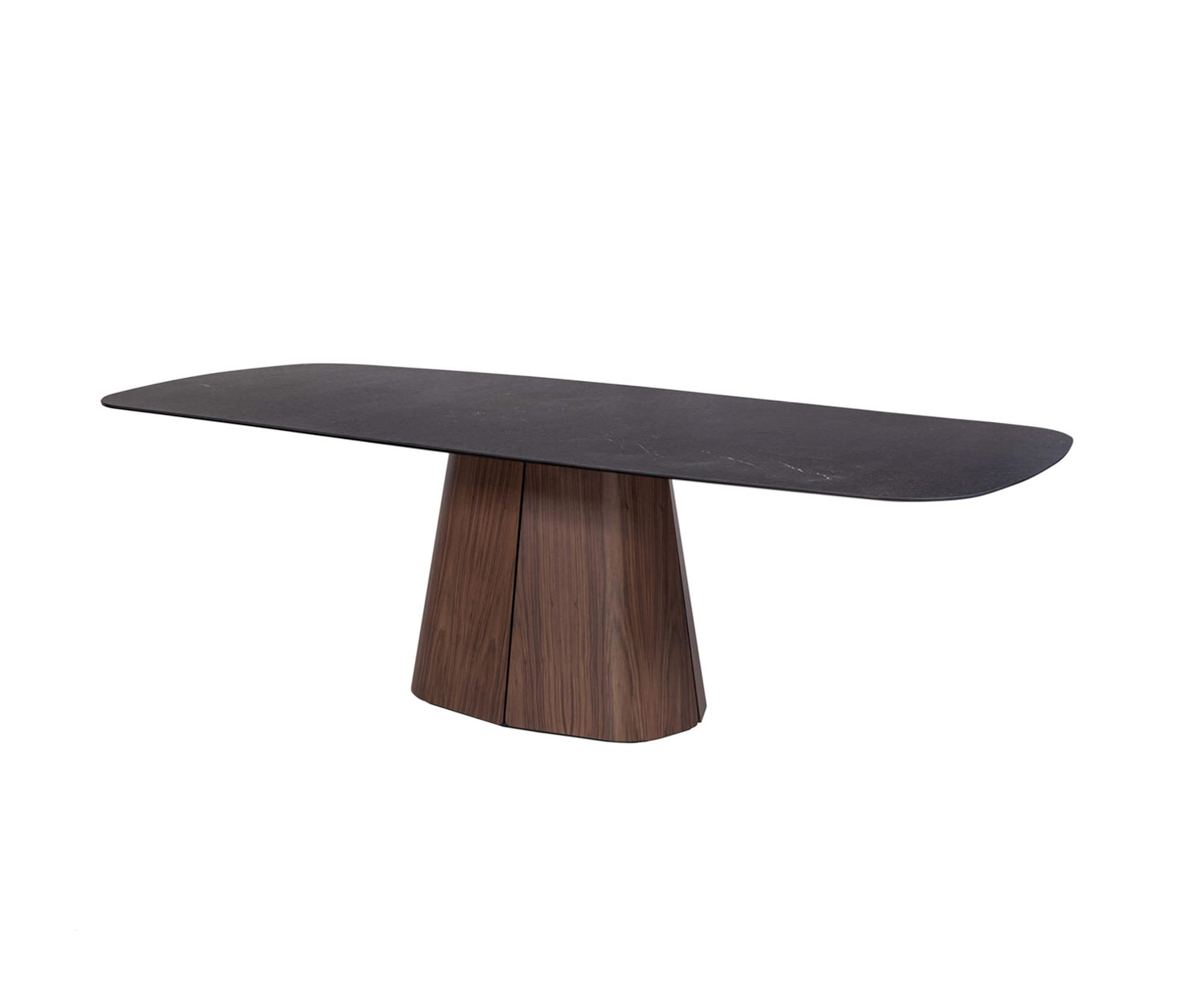 Der al2 tessera 001 Design Esstisch begeistert mit seinem außergewöhnlichen Design, das durch den zylinderförmigen Sockel in edlem Holzfurnier und die exklusive Tischplatte aus Keramik oder Walnussfurnier besticht. Die zentrale Sockelausführung sorgt nicht nur für eine stabile Konstruktion, sondern auch für großzügigen Platz für Ihre Gäste. So ist der Tisch ideal für Familienfeiern und gesellige Anlässe. In Griechenland mit besonderer Sorgfalt gefertigt, bietet dieser Esstisch eine exklusive, individuelle Verarbeitung, die Ihrem Esszimmer eine elegante und moderne Note verleiht.