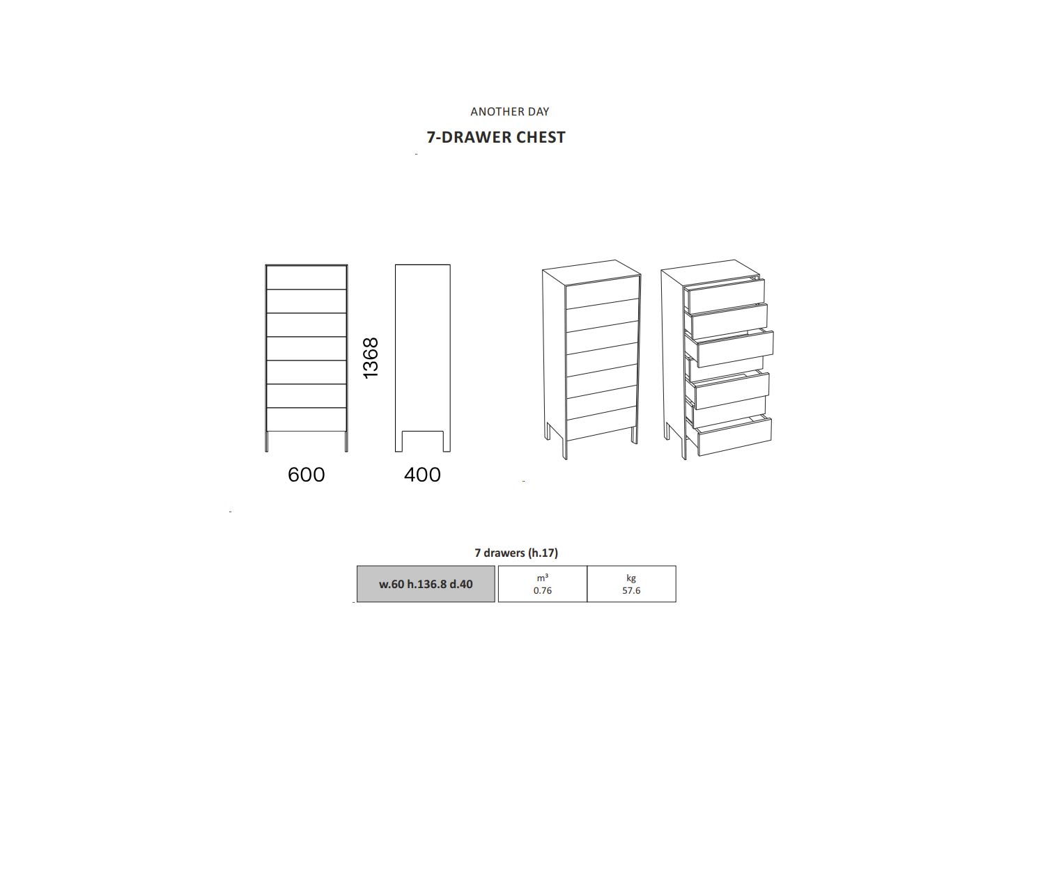 W 60 cm / H 136.8 cm / D 40 cm