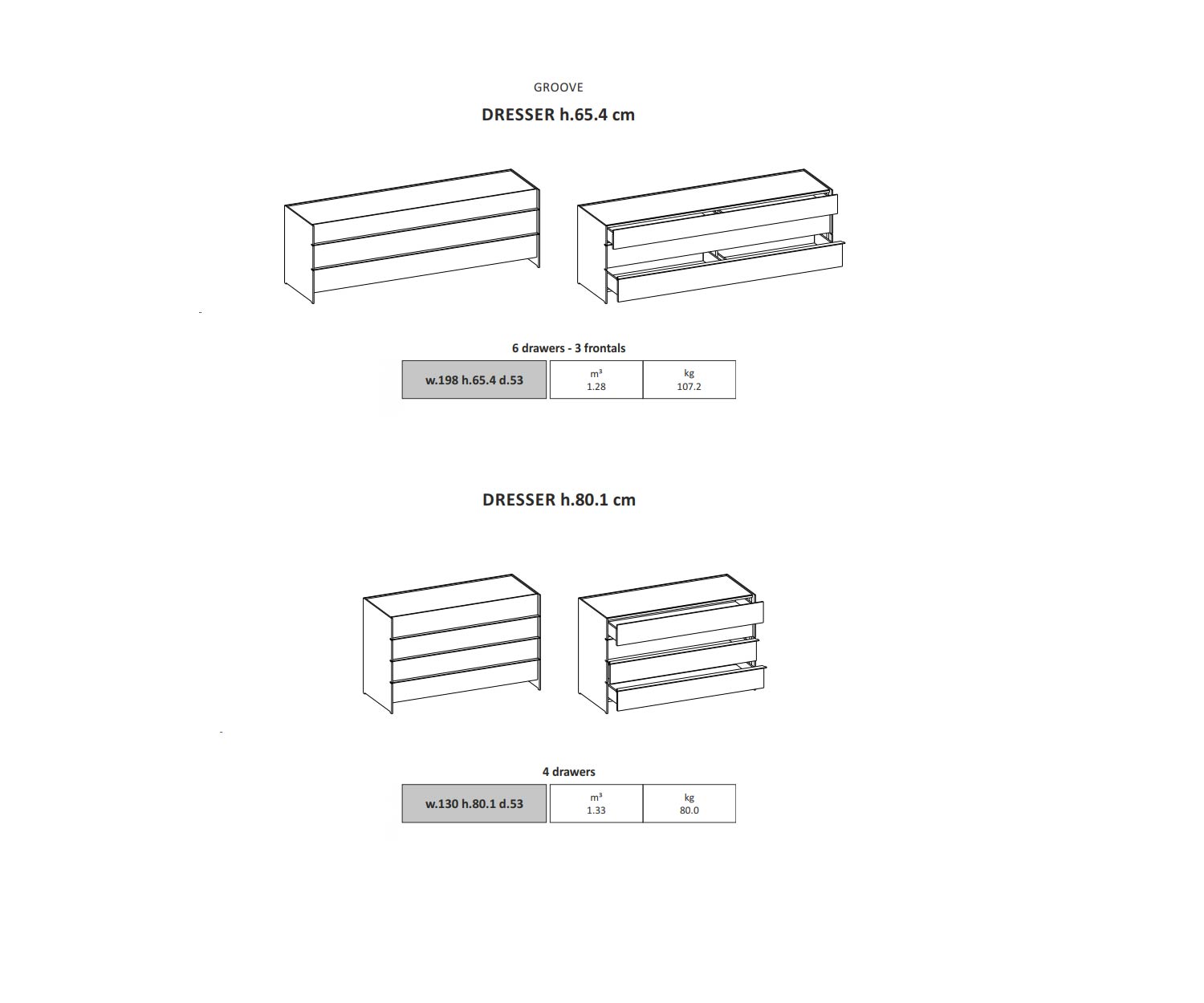 The Capo d'Opera Groove Design chest of drawers is available in the following dimensions:
