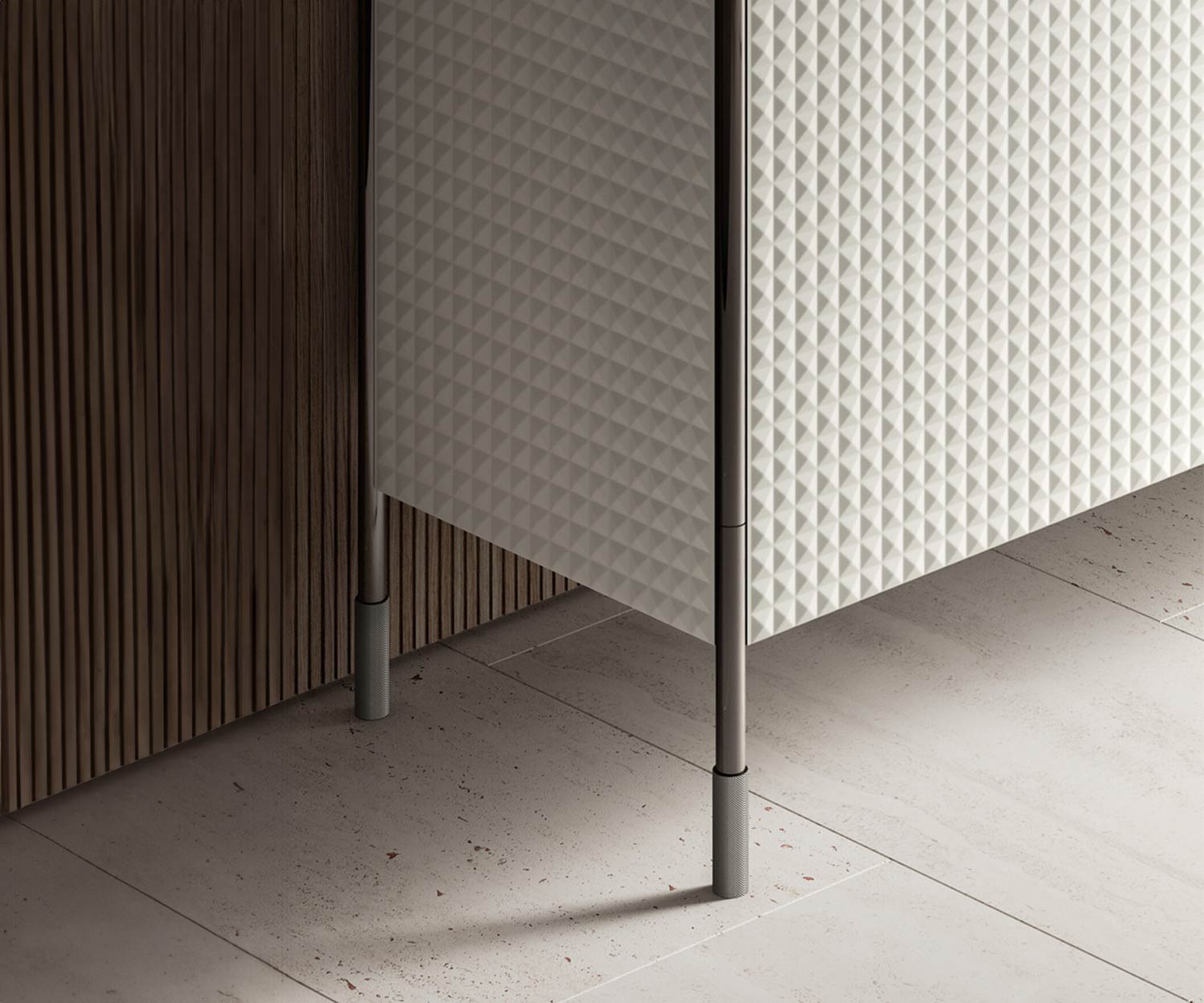 The Spin Design sideboard from Capo d'Opera designed by Alessio Bassan & Silvano Pierdona impresses with its unmistakable design. The doors of the sideboard are made of a high-quality MDF board, with fronts and sides made of a stable aluminium honeycomb core.