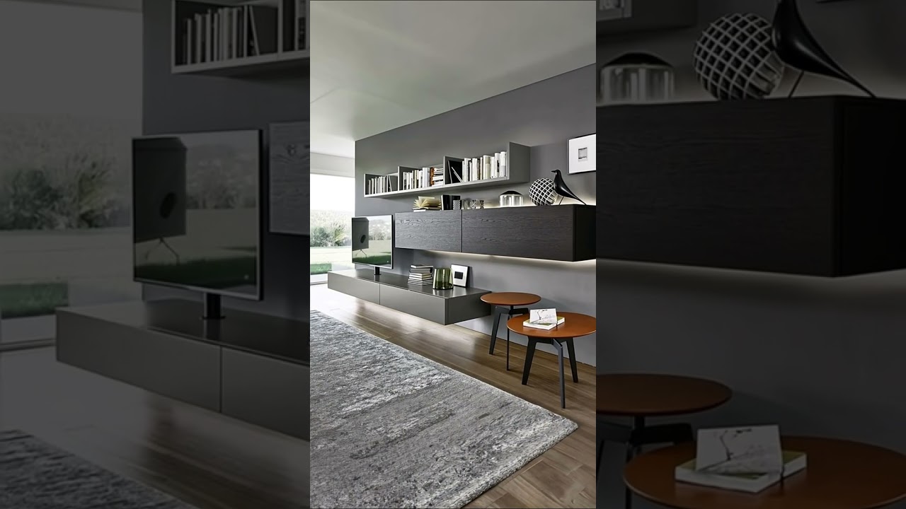 Modern design wall unit C60 from Livitalia from Italy. The wall unit has an integrated column TV holder with cable routing in the lowboard. TV sets can be concealed behind the hinged door. One of the wall units has a hinged door that can be used as a desk when open. For a particularly modern touch, the wall unit has optional LED lighting. Individual customisations are possible on request.