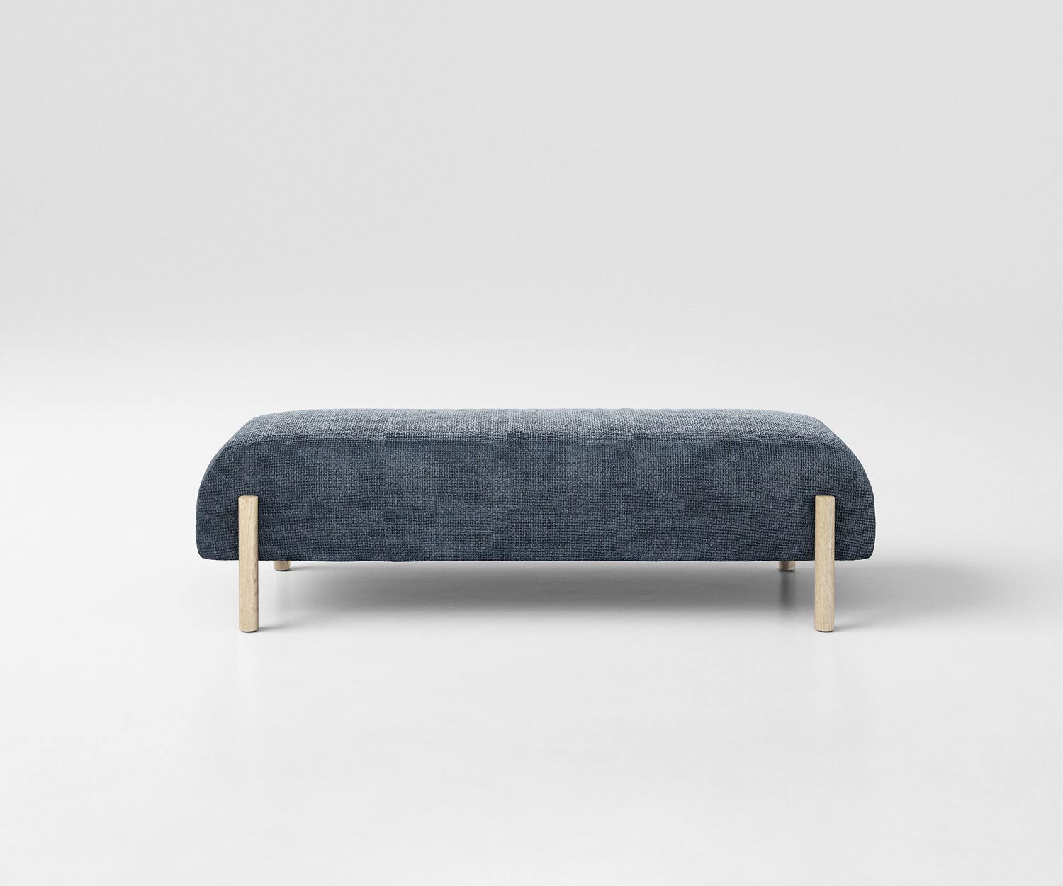The frame and legs of the Dora bench are available in dark oak Terra N01, walnut oak Miele and light oak Chiaro N04