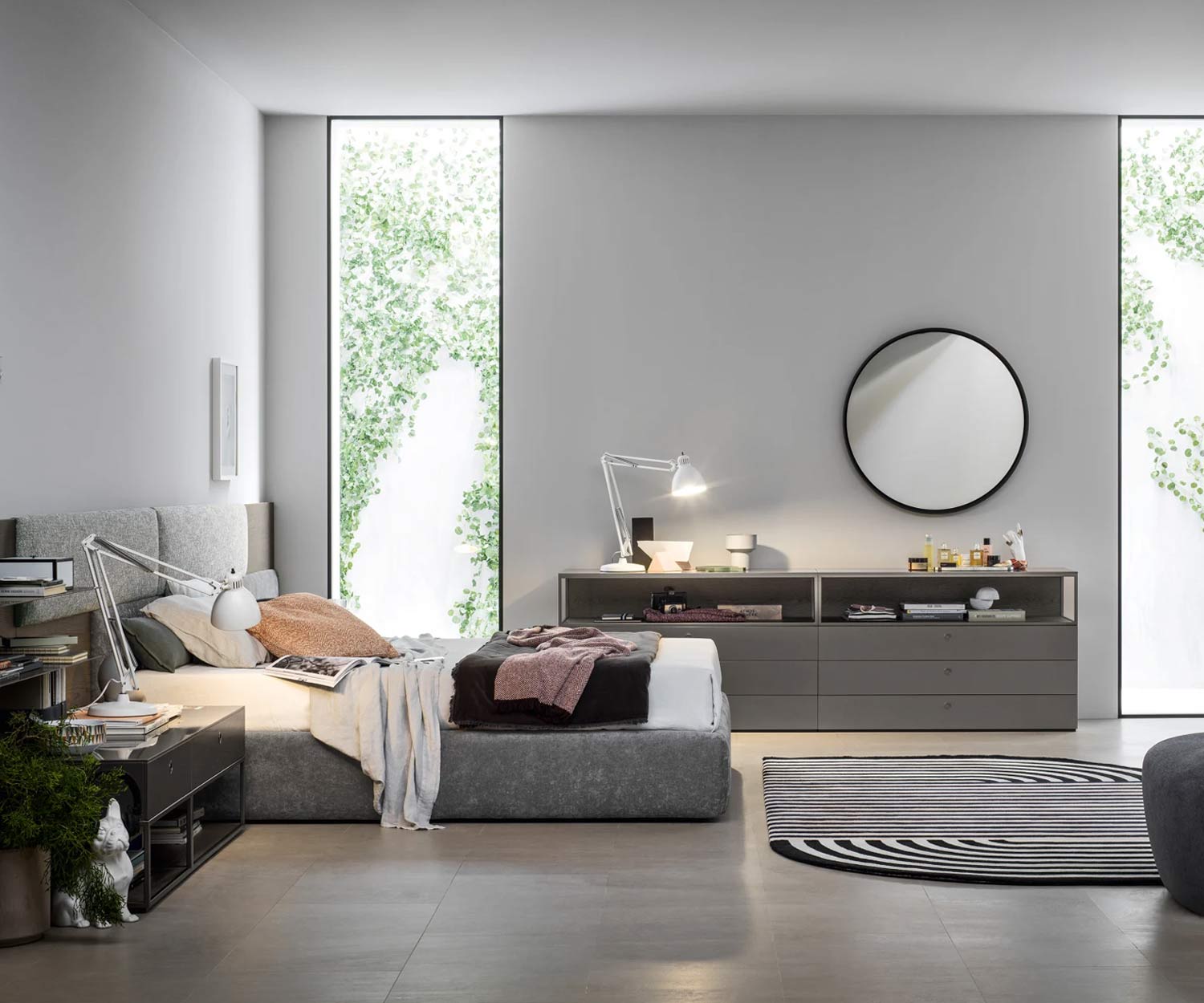Charakteristisch für Square ist der elegante Metallrahmen, der Schubladen und offene Fächer zu einem harmonischen Gesamtbild vereint. So entsteht ein spannendes Spiel aus Struktur, Leichtigkeit und Funktion – perfekt für moderne Wohn- und Schlafräume.