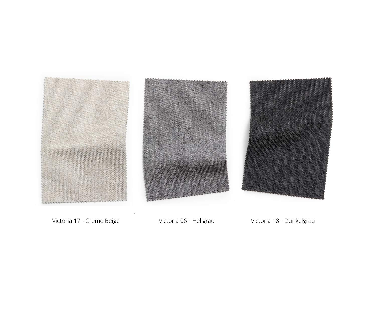Der Bezug Victoria ist besonders weich und ist in folgenden Farben erhältlich: Creme Beige (Victoria 17), Hellgrau (Victoria 06) und Dunkelgrau (Victoria 18). Bezug Struktur und Farbe, wie Farbauswahl Bildchen.