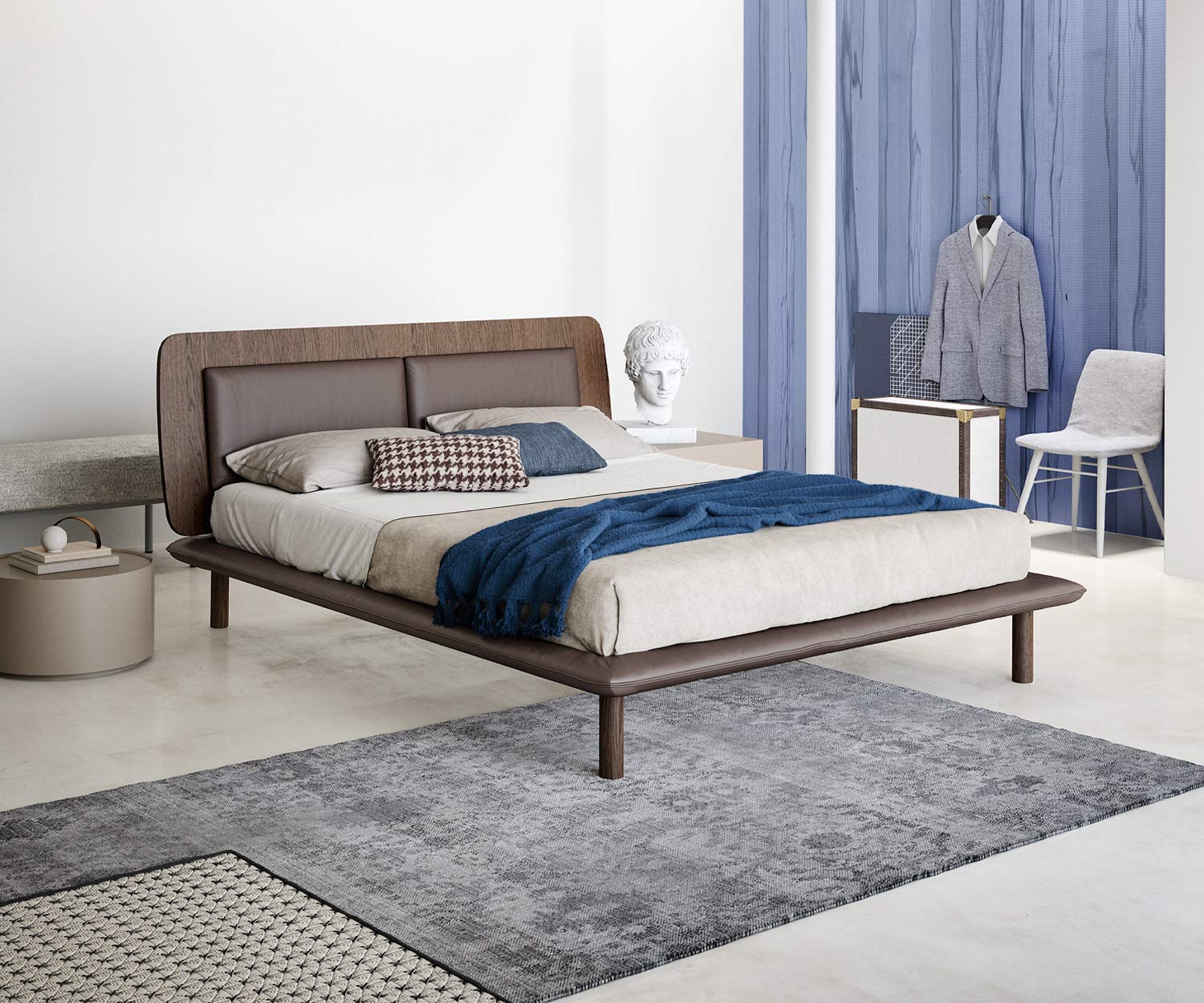 Das Novamobili Bett Matisse überzeugt mit seinem markanten Design und hochwertigen Materialien. Das hohe Kopfteil, setzt einen eleganten Akzent und sorgt für besonderen Komfort. Der Überstand des Kopfteils lässt sich kreativ nutzen, um stilvolle Leder-Ablageflächen zu integrieren.