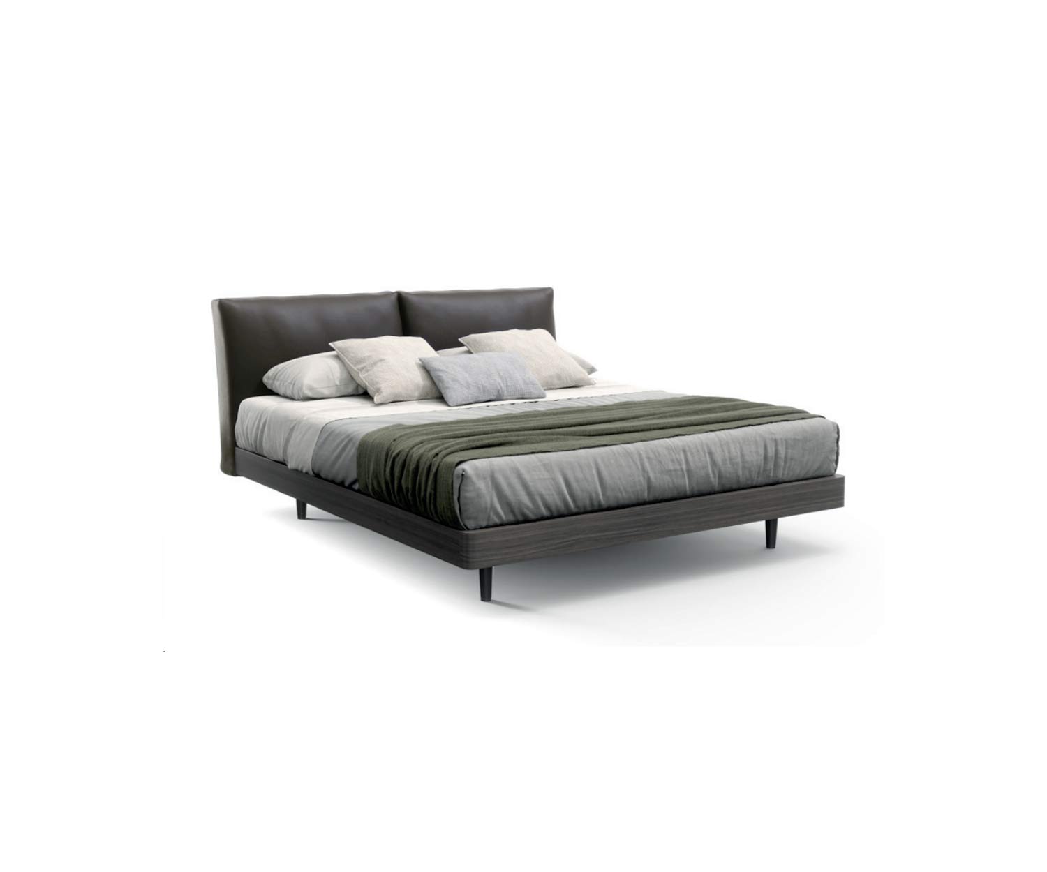 The simple and modern Nido designer bed is only made to order for you in Italy. The Novamobili Nido bed is characterised by a narrow wooden frame with inwardly offset feet. This gives the bed a floating and particularly light look. For a discreet but elegant look , the bed frame is coated in dark elm and has rounded corners (NEW 2020 version!). The tapered legs are finished in black.