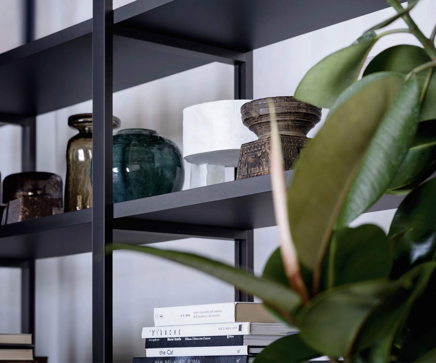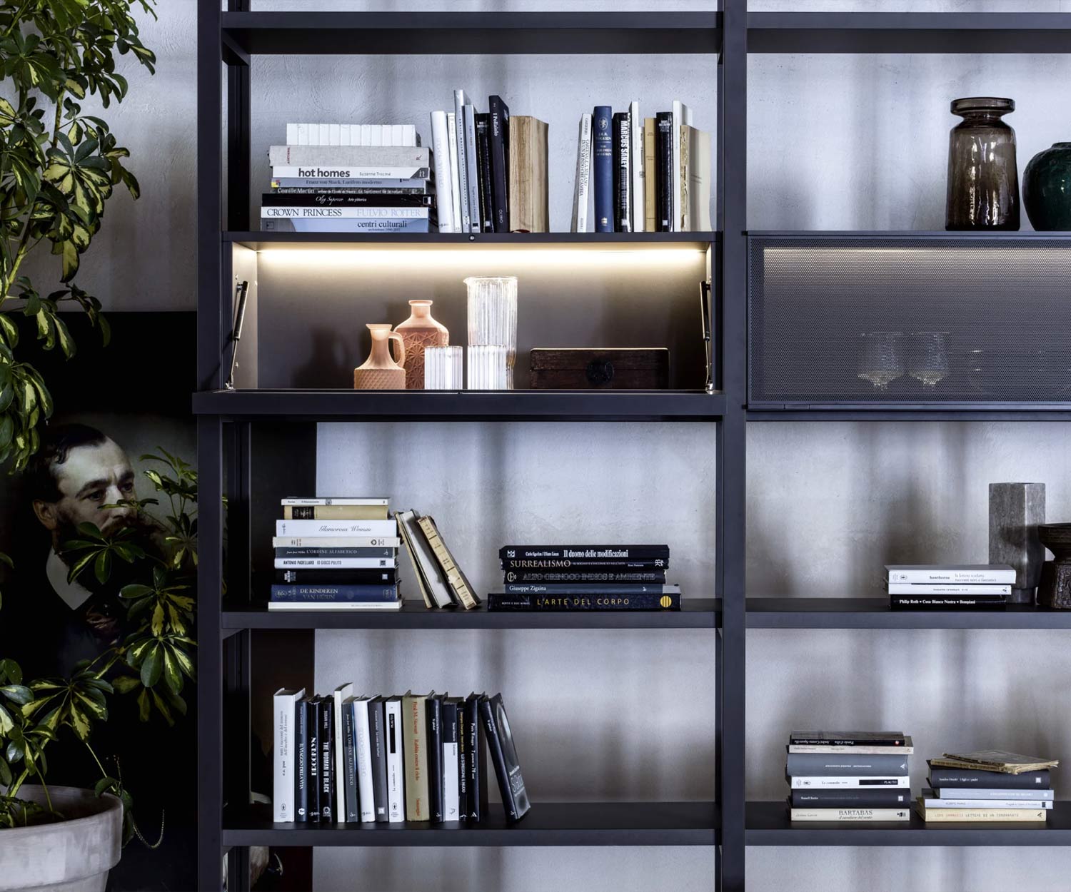 Modern Pontile metal shelving unit. The shelving system is only made to order from Novamobili in Italy. We can configure your desired shelf size on request.