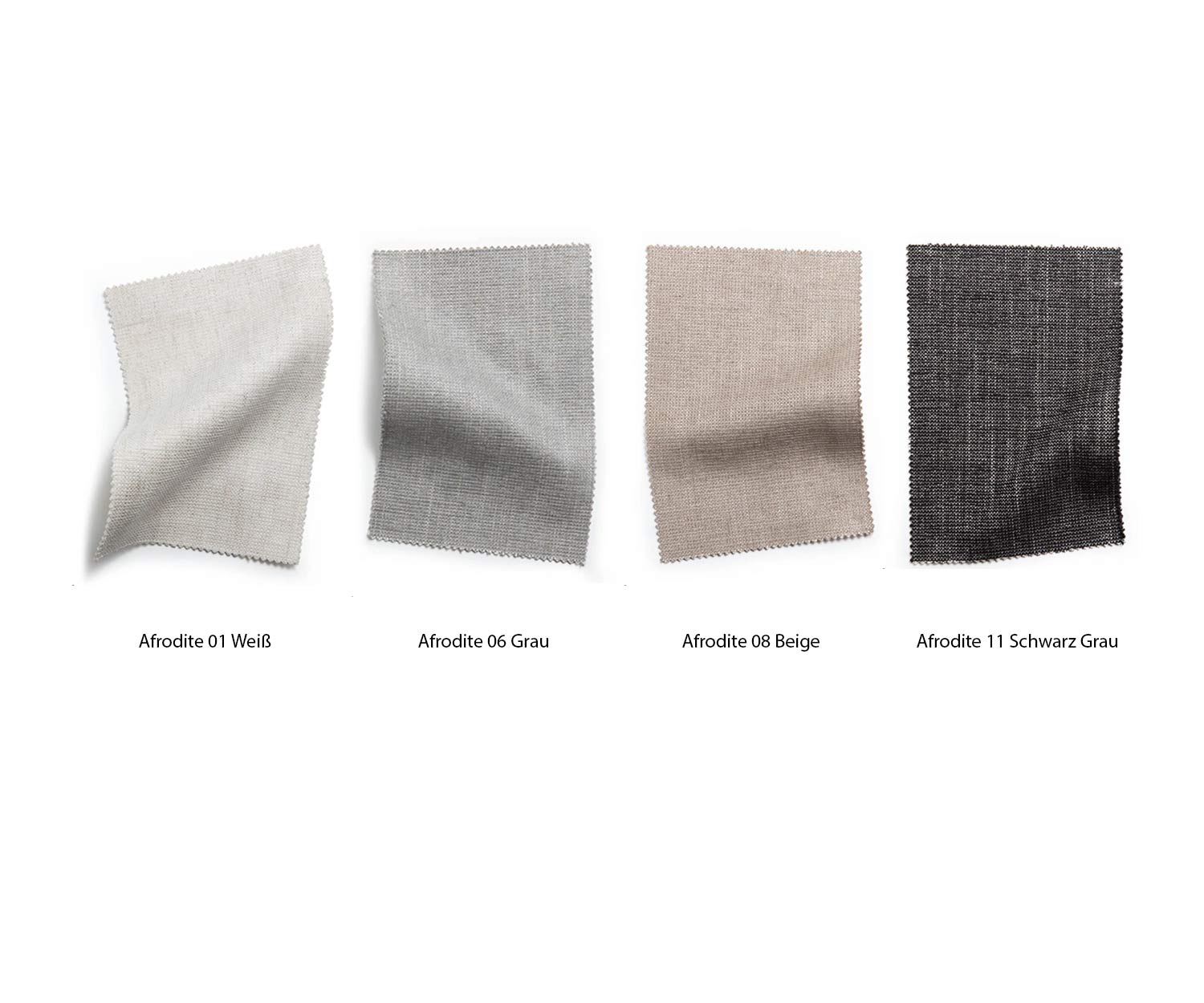 The Afrodite fabric cover consists of 40% viscose, 24% cotton, 23% polyester and 13% linen