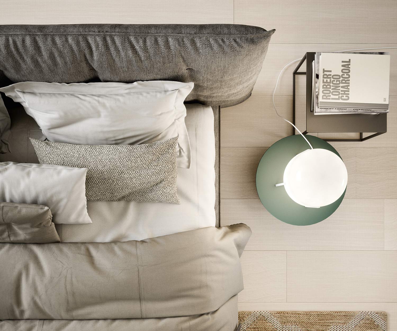 The Tufte bed from Novamobili is available in 2 sizes, with a lying surface of W 160 cm x L 200 cm or W 180 cm x L 200 cm.