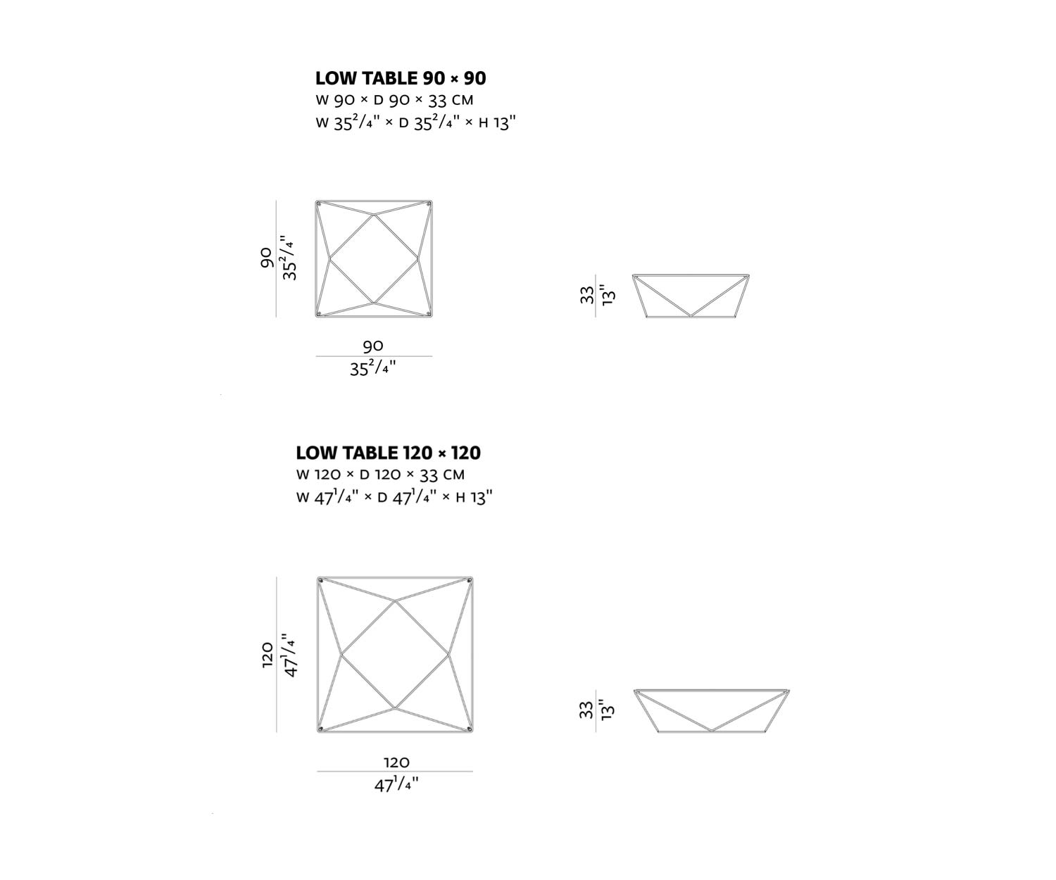The Persol grey tinted glass table top is mounted on a slim metal frame. The 10 mm diameter metal rods of the frame join at a 45 degree angle to the base. This sophisticated design creates a crystalline structure that makes the Avet coffee table an eye-catcher in any room. The name "Avet", which means "ghost" or "phantom", is a tribute to the seemingly dematerialised appearance of the table. The powder-coated metal frame is painted in matt black (RAL 9005).