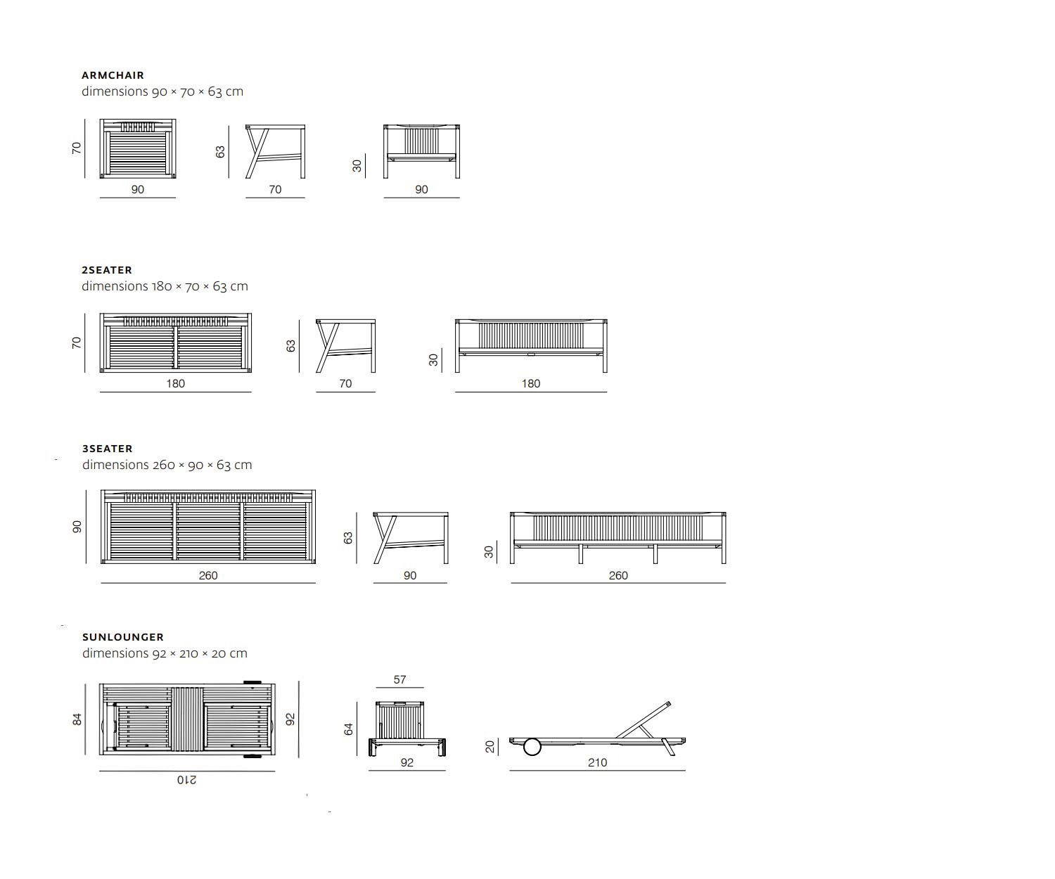 W 260 cm / H 63 cm / D 90 cm (3-seater)