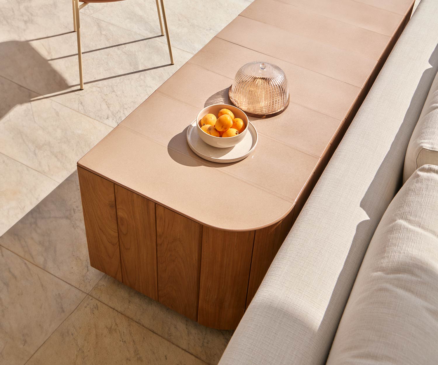 With its new materials - the combination of high-quality ceramic and teak - the Atrio outdoor sideboard offers