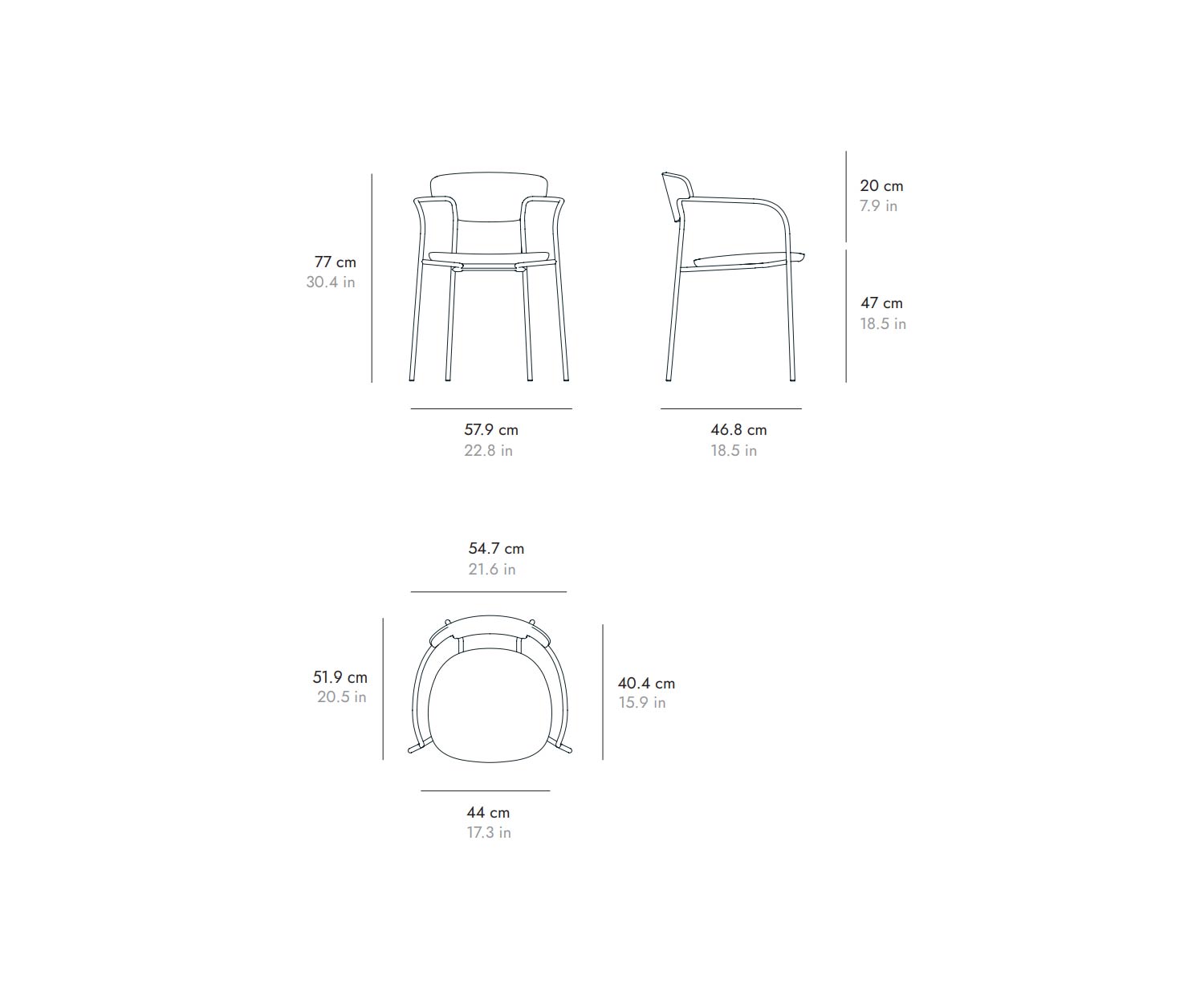 W 57.9 cm / H 77 cm / D 46.8 cm