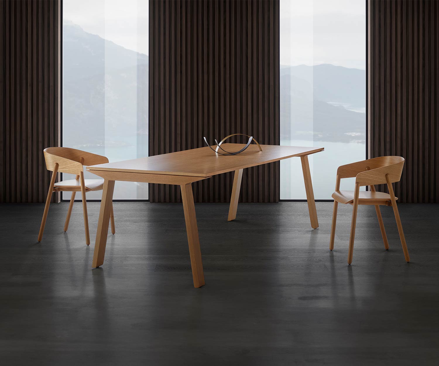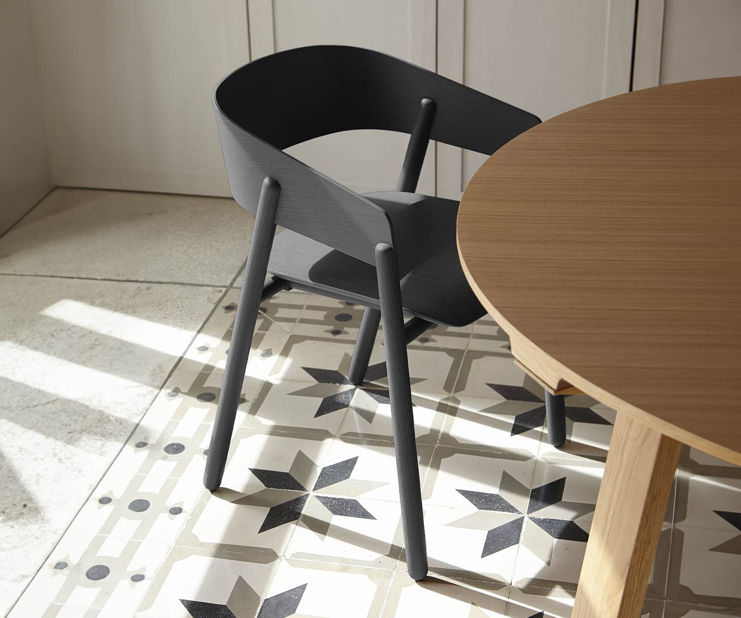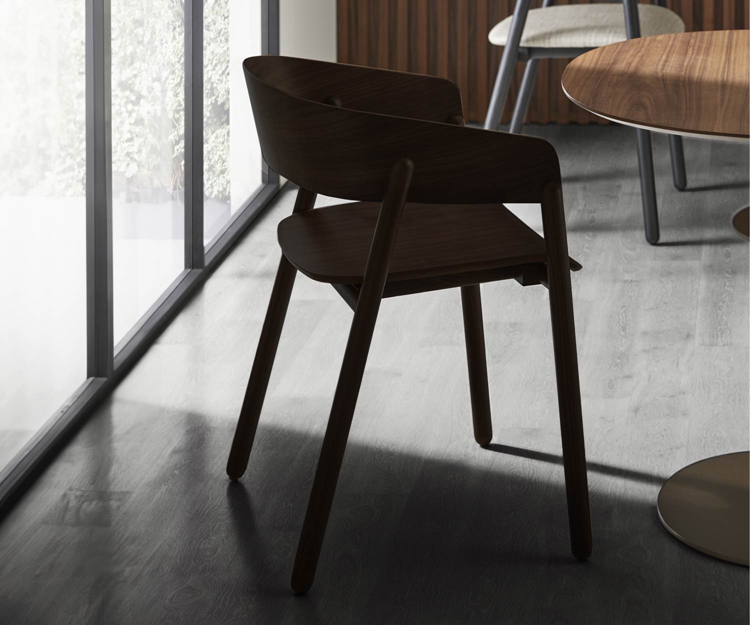 The Mava designer chair from Punt is only made to order for you in Spain. Production is done by hand. The frame is made of solid oak or walnut wood. The seat and backrest are made of moulded plywood with a real wood veneer in walnut or oak. The legs have integrated felt glides.