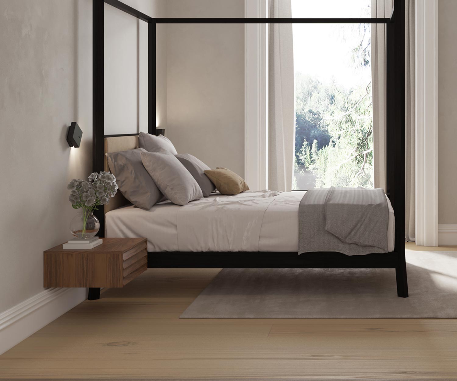 Each Sussex bedside cabinet is delivered from Punt completely pre-assembled and securely packed. Only the high feet need to be fitted for transport reasons. The bedside cabinet is delivered to your home free of charge. On request, you can also book professional assembly in the shopping basket and your new bedside cabinet will be professionally hung on the wall. Please use wall plugs depending on the condition of the wall.