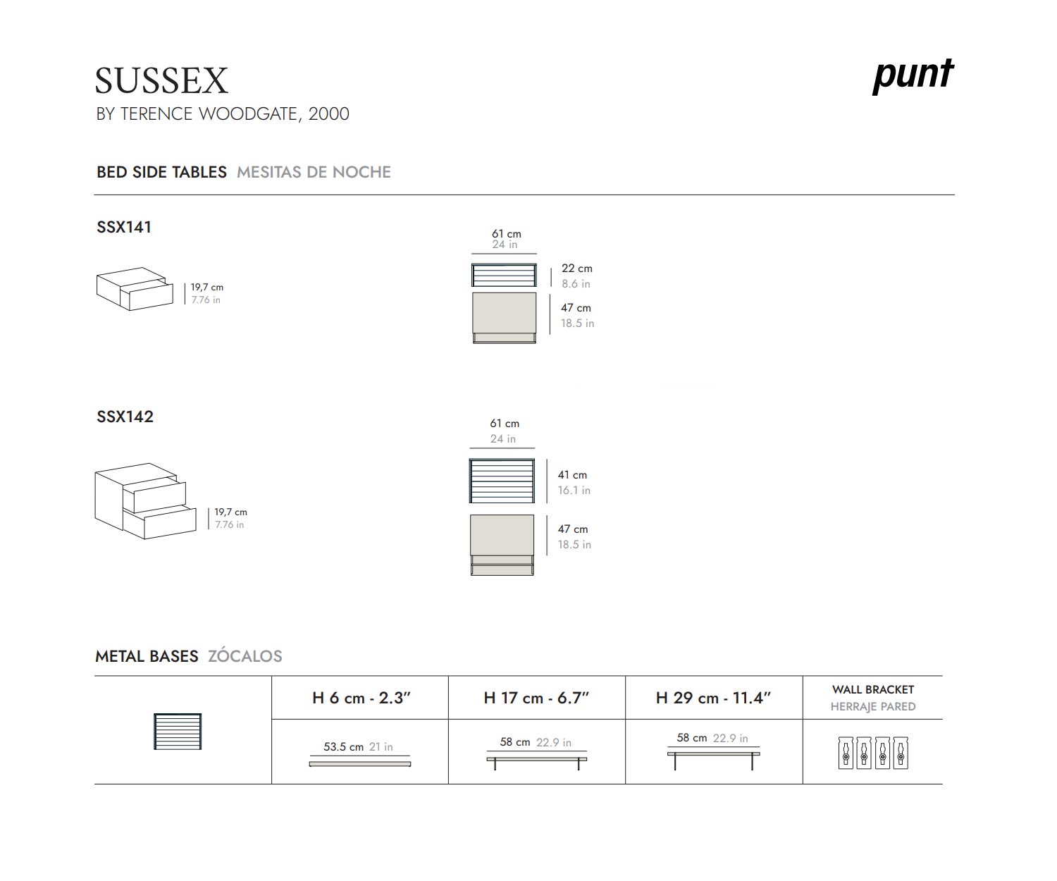 The Punt Sussex design bedside cabinet comes in the following dimensions: