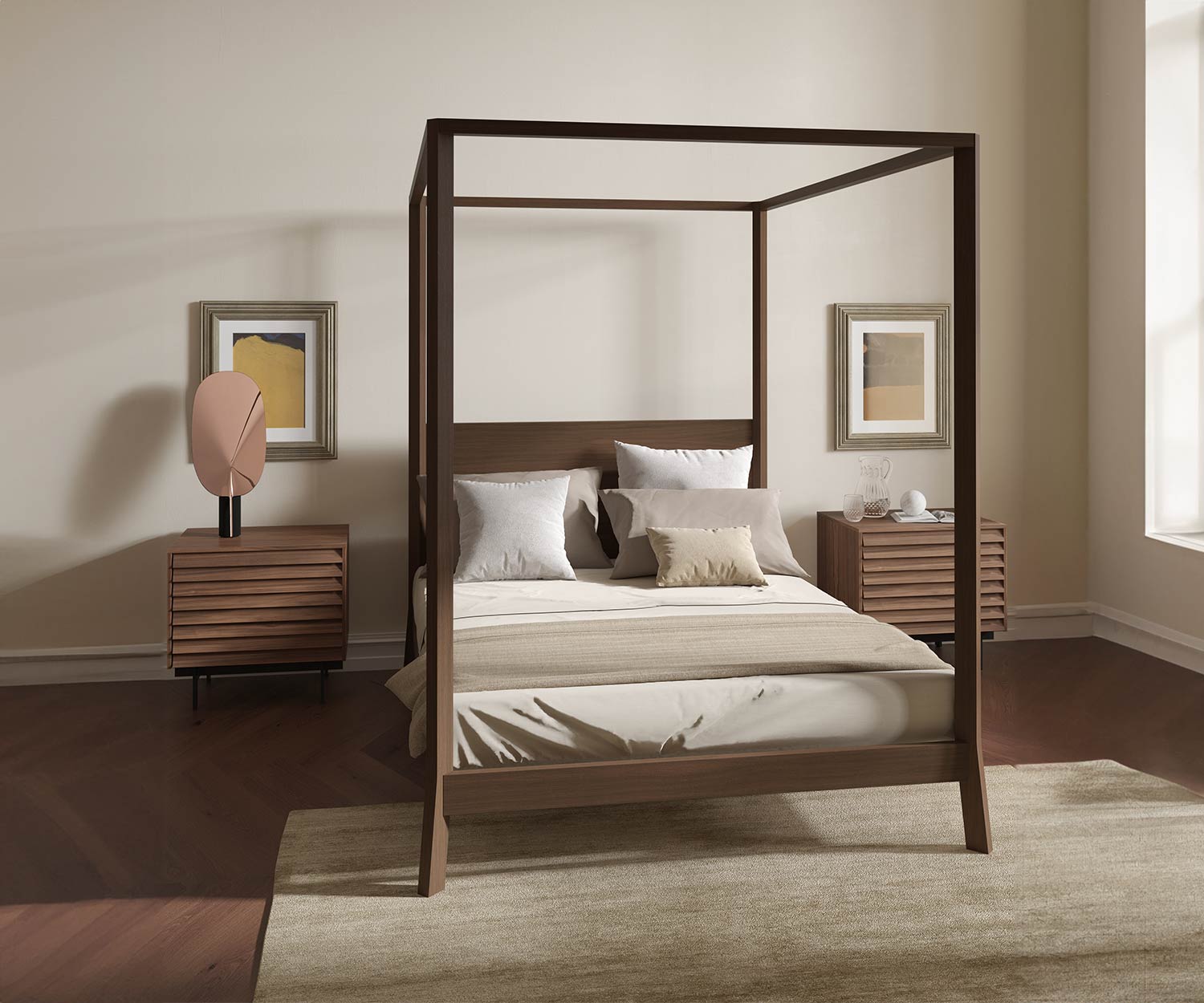 Der Nachttisch weckt Erinnerungen an Ferien im Süden und bringt eine warme Atmosphäre ins Schlafzimmer.