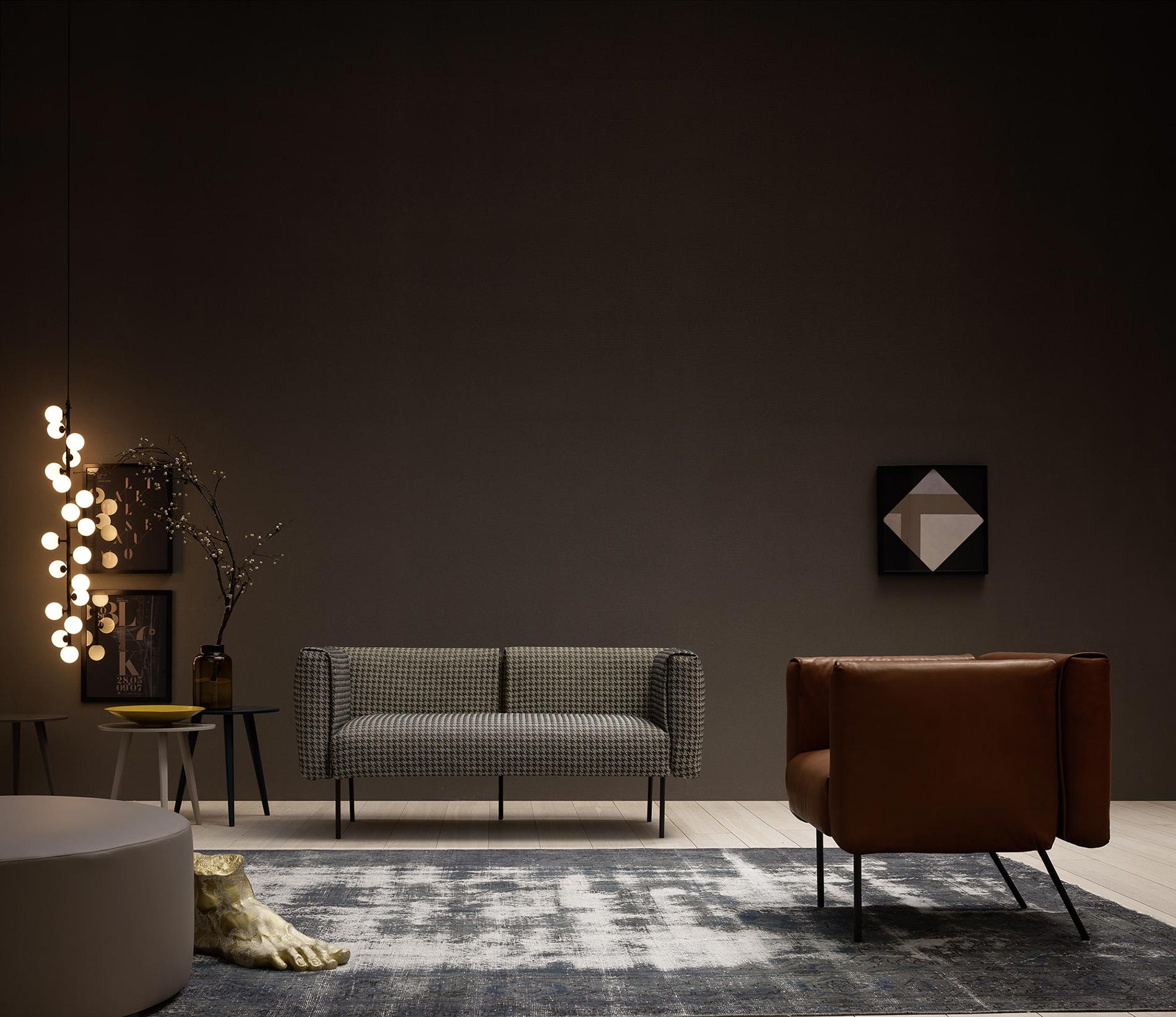 Modernes 2-Sitzer Sofa für Foryer und Lobby. Die große Polsterung mit grazilen Beinen ist das Markenzeichnen dieser Serie. Auf Anfrage in verschiedenen Bezügen und Größen.