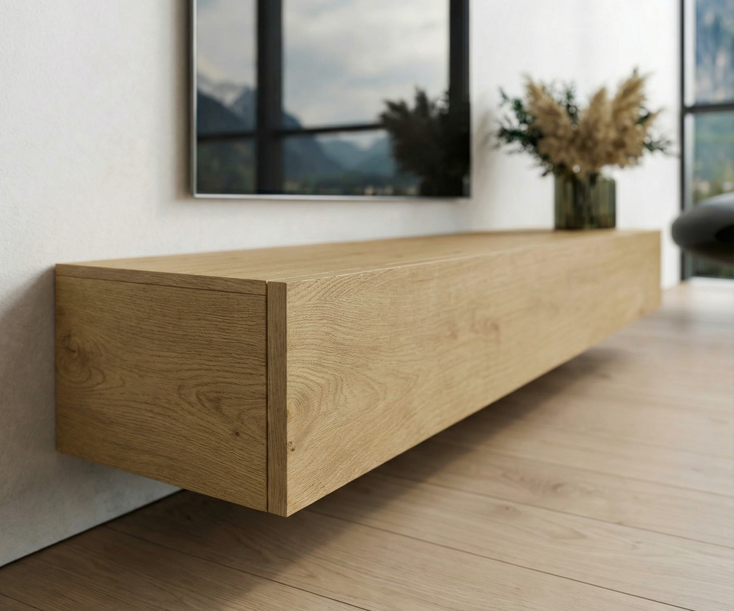 Livitalia Holz Lowboard Konfigurator Wand 150 cm 32 cm 46 cm Eiche hell