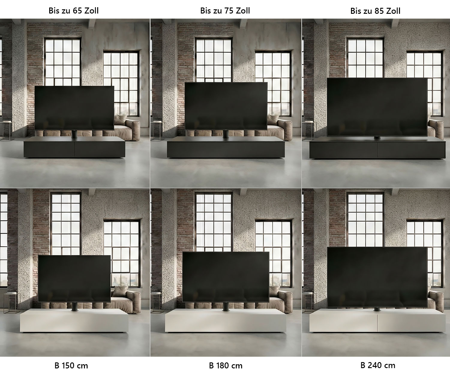 Hinweis: Das Angebot umfasst das beschriebene Möbelstück (Roto Slim Lowboard mit Paneel). Dekoration und TV-Geräte sind nicht enthalten. Farben können je nach Bildschirmeinstellung leicht abweichen.