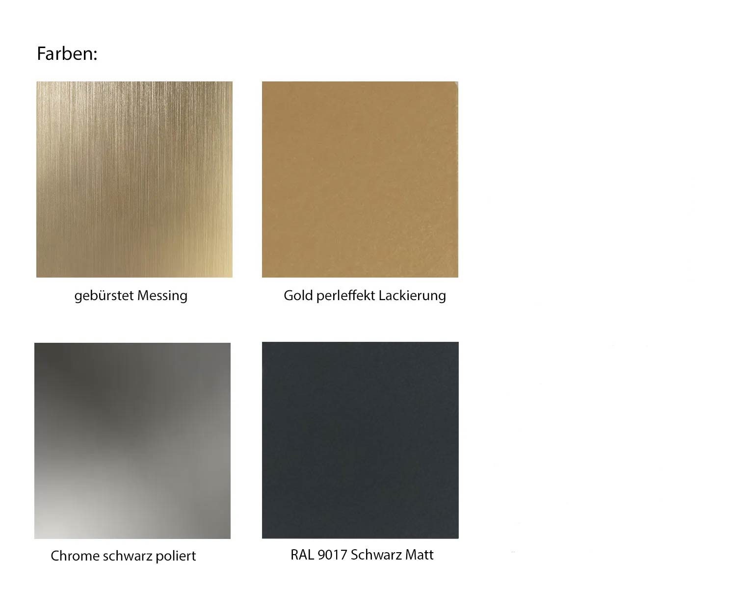 Der Marelli Design Beistelltisch Clip ist in den Farben RAL 9017 Matt Schwarz oder in Chrom Schwarz glänzend und Messing gebürstet und Gold Perleffekt lackiert erhältlich.