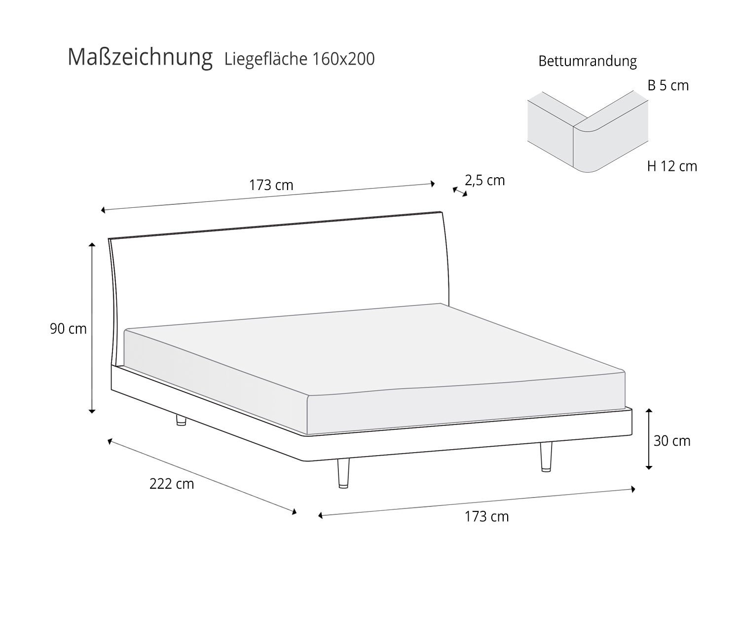 Die Liegefläche für die Matratze beträgt 160 x 200 cm.
