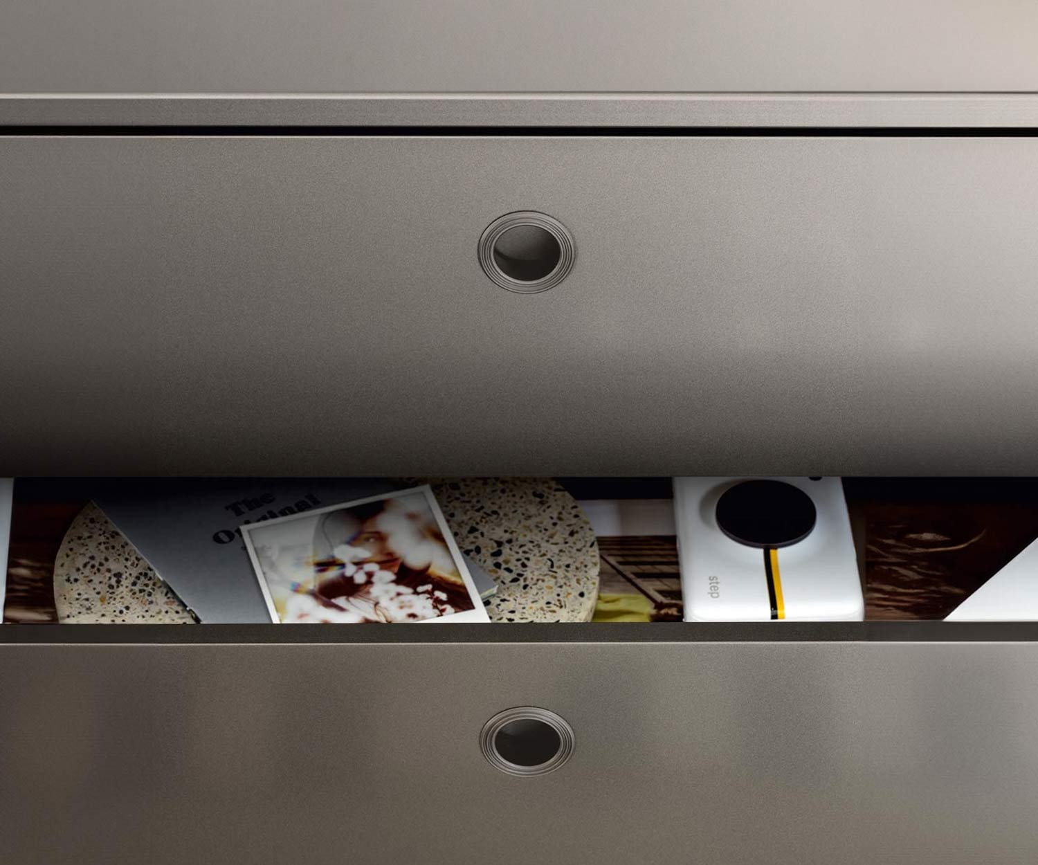 Charakteristisch für Square ist der elegante Metallrahmen, der Schubladen und offene Fächer zu einem harmonischen Gesamtbild vereint. So entsteht ein spannendes Spiel aus Struktur, Leichtigkeit und Funktion – perfekt für moderne Wohn- und Schlafräume.