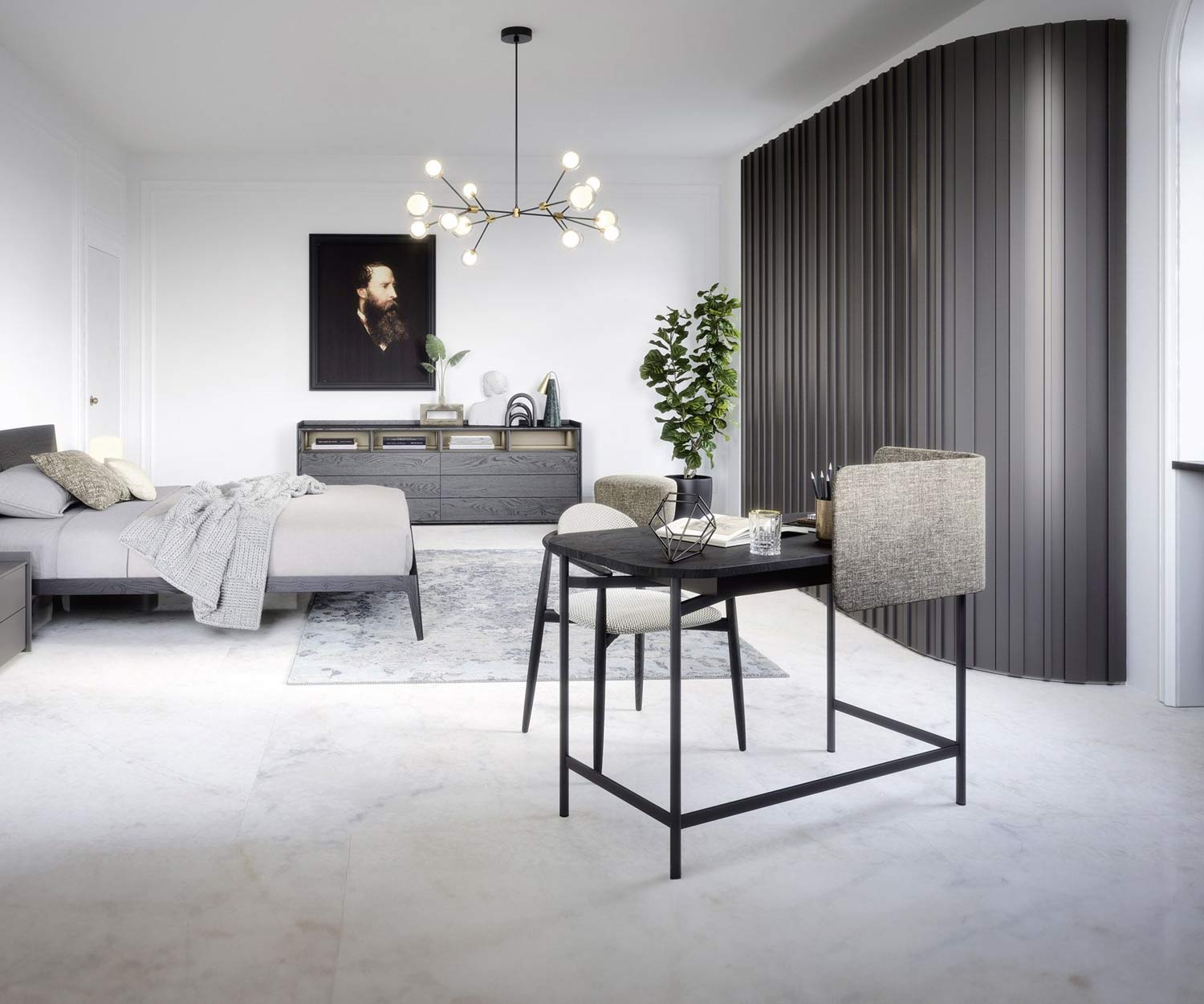 Die Kombination aus dunkler Carbon Eiche und edlem Stoff verleiht Ihrem Schlafzimmer oder Arbeitszimmer Geschmack und stilvolle Eleganz.
