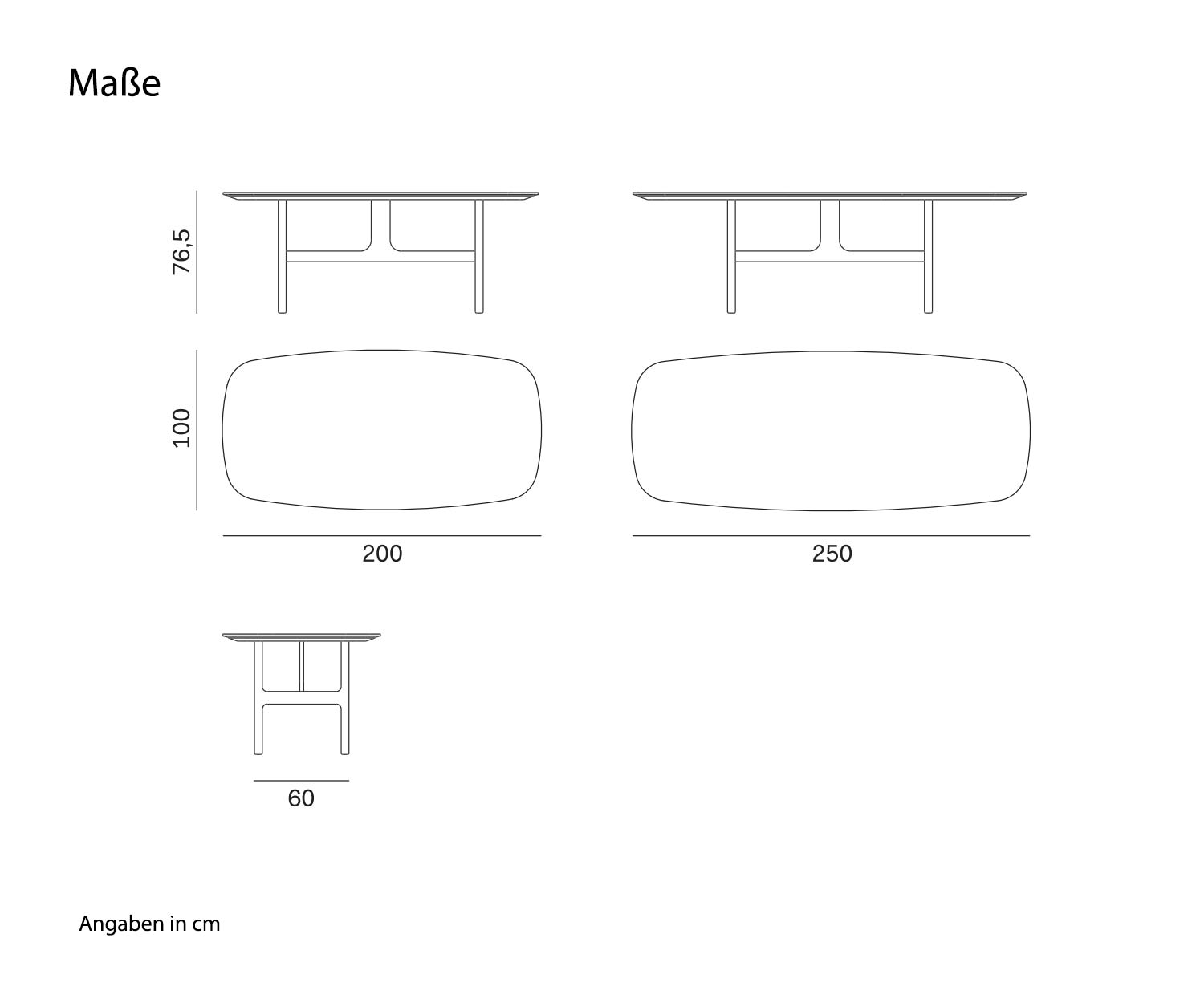 Der Esstisch Torii ist in den Breiten 200 oder 250 cm erhältlich.