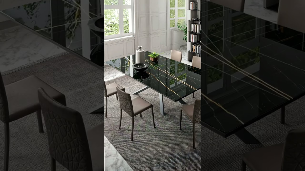 Auf Wunsch kann der Tisch über einen speziellen Mechanismus ausgezogen werden. Wie das geht, habe uns die Italiener in einem amüsanten Video einfach veranschaulicht.