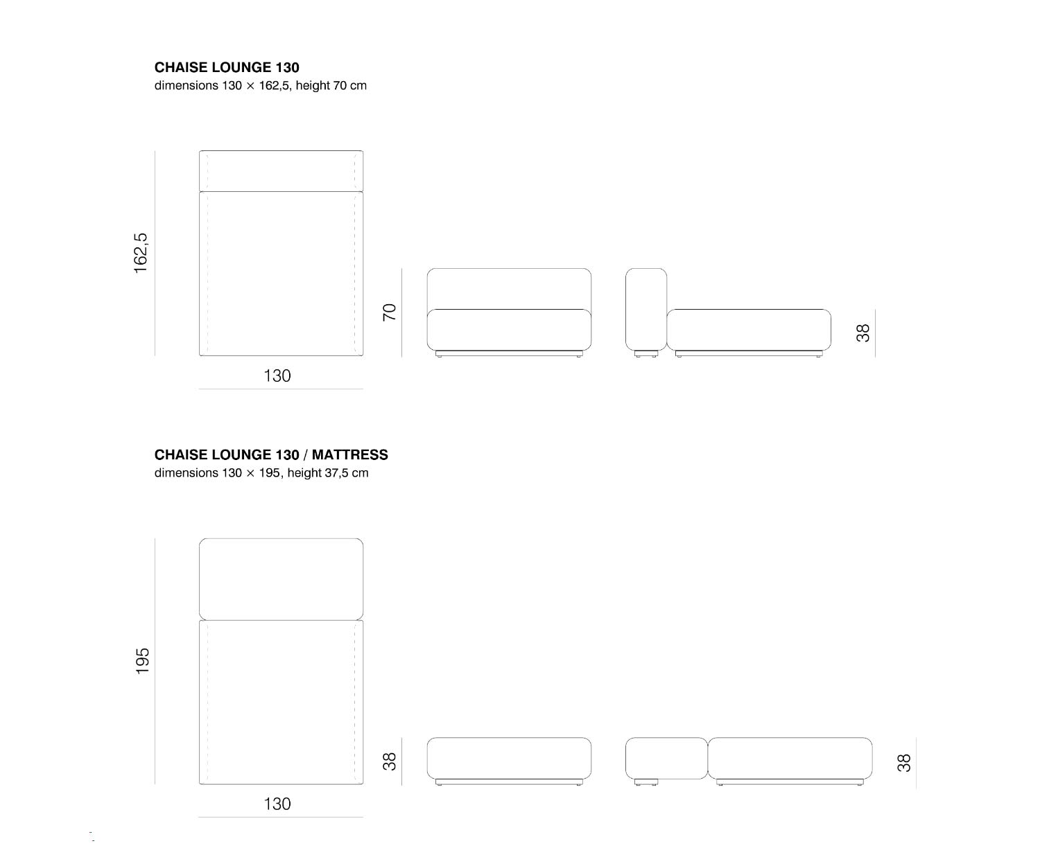 B 130 cm / H 70 cm / T 162,5 cm als Chaise Lounge