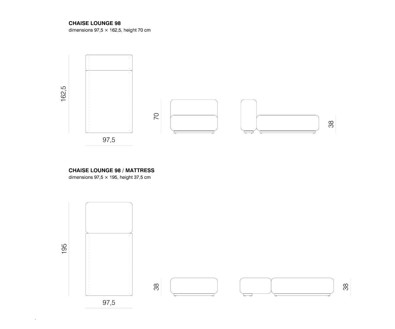 B 97,5 cm / H 70 cm / T 162,5 cm als Chaise Lounge