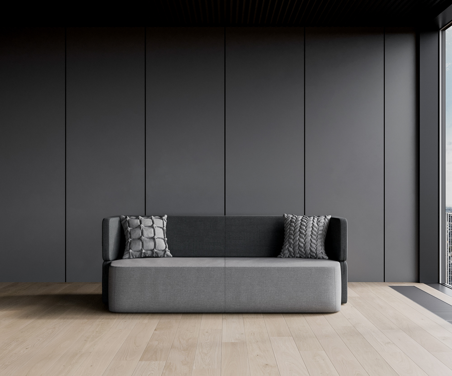 Der Bezug des Prostoria Revolve Designer Schlafsofas ist in 4 verschiedenen Farbkombinationen erhältlich. Die zwei Farben sind: Hellgrau oder Dunkelgrau.