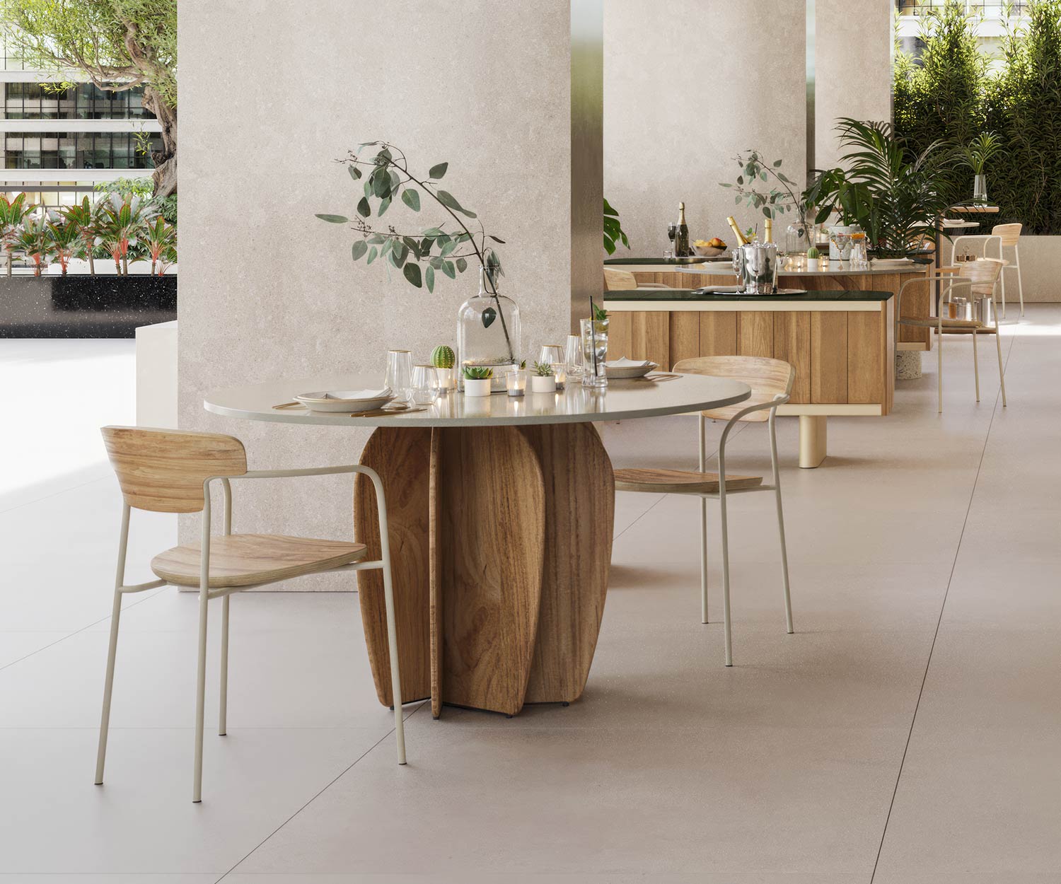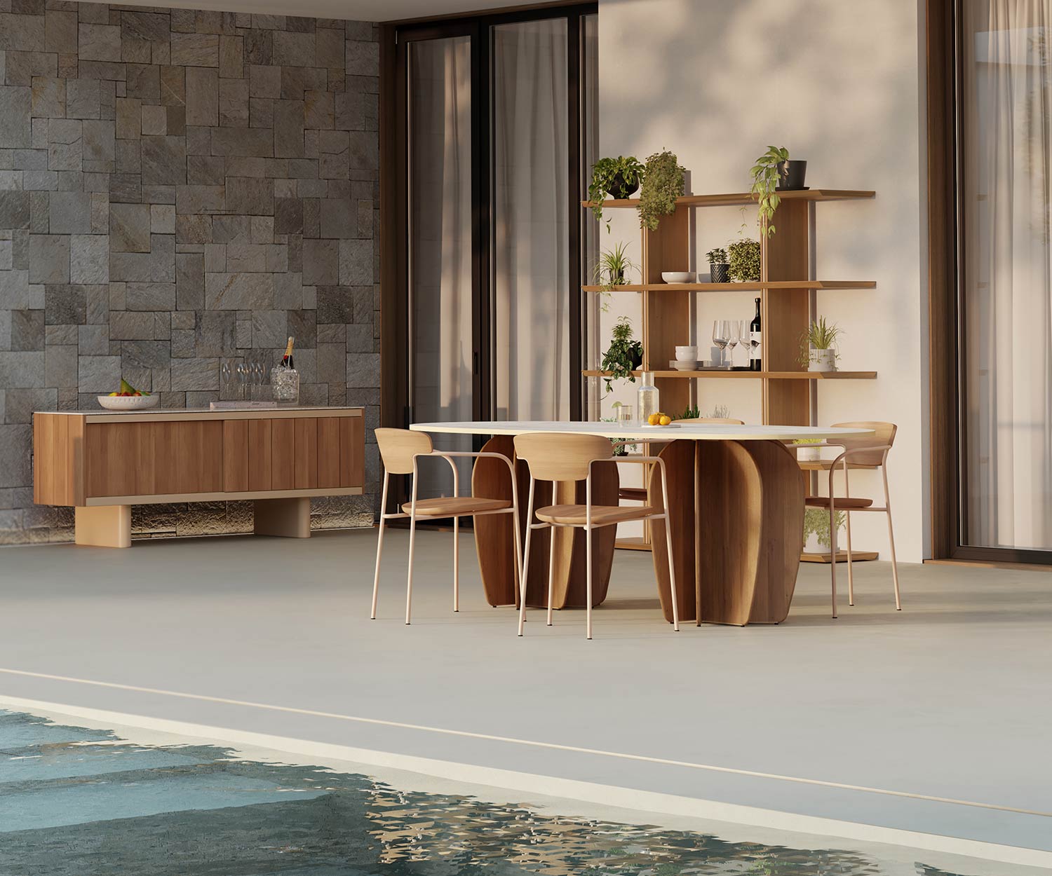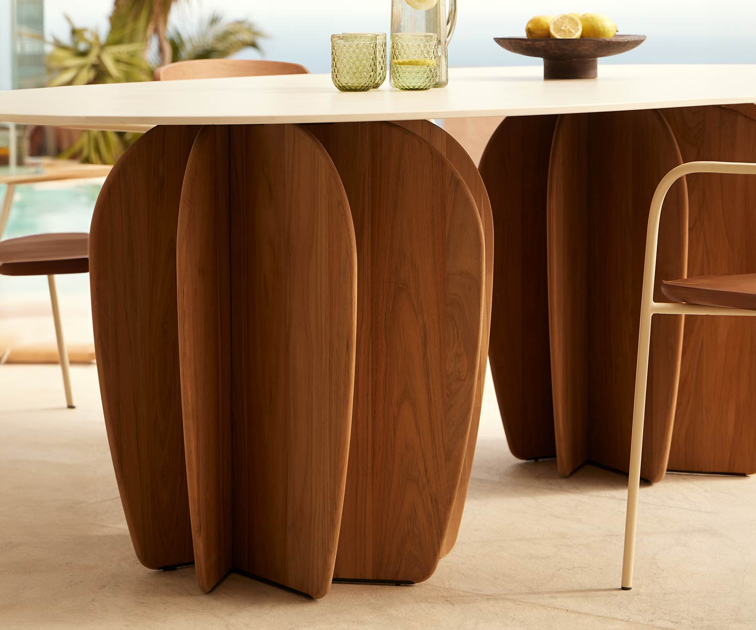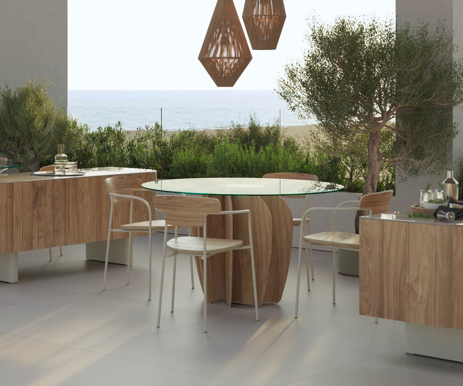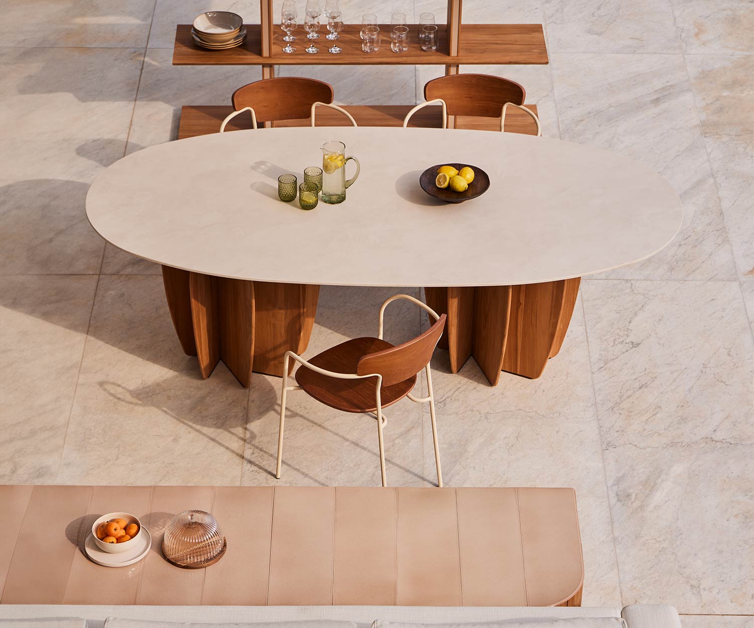 Der Coral Outdoor Esstisch bietet mit seinen neuen Materialien, Teak und Ton, ein authentisches Ambiente und ist gleichzeitig wetterbeständig. Das hochwertige Design der Tischbeine macht Ihre Terrasse zu etwas Besonderem. Passend zum Coral Esstisch gibt es das exklusive Punt Atrio Sideboard für den Außenbereich.