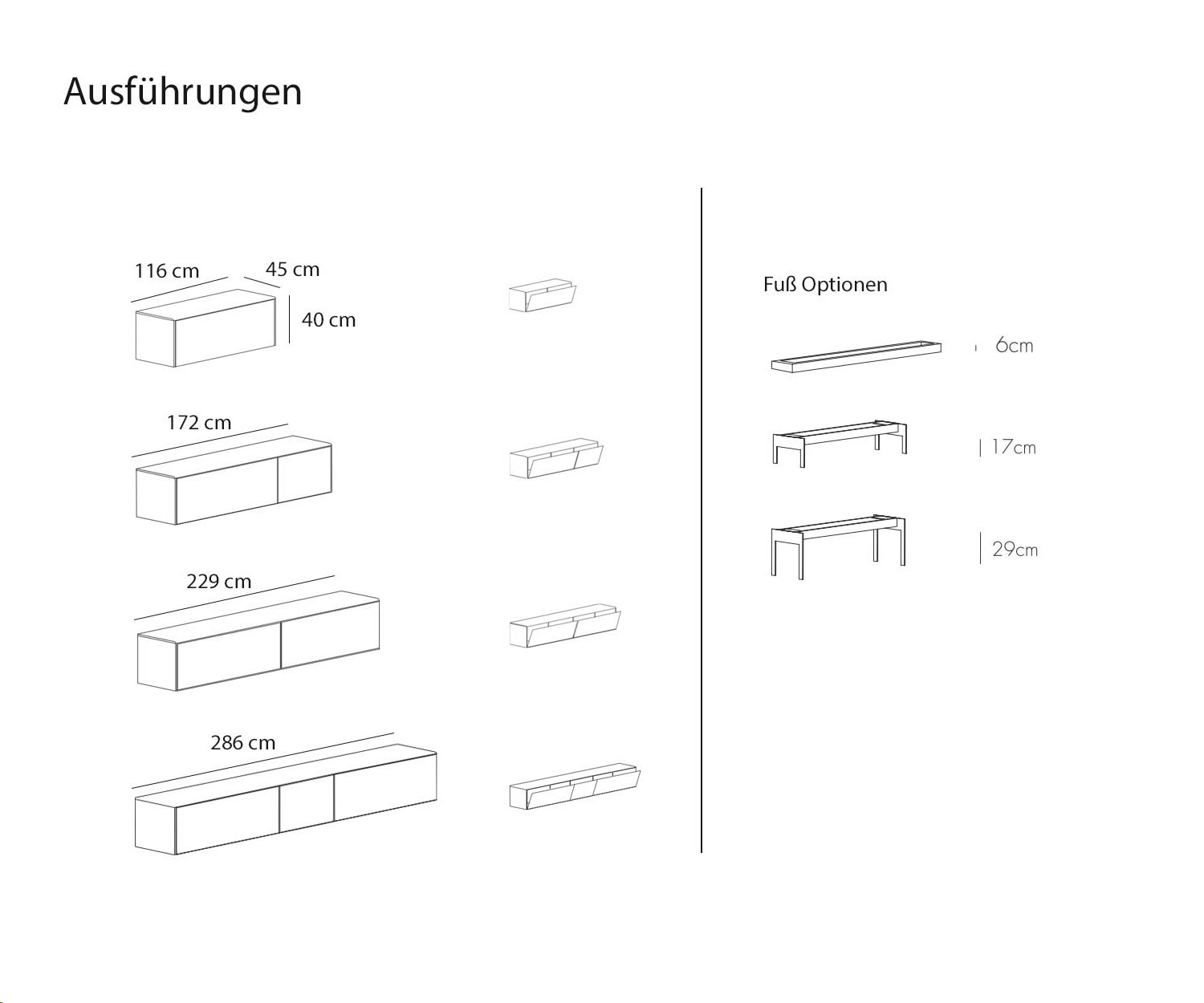 Das Punt Malmö Sideboard ist in folgenden Breiten erhältlich: