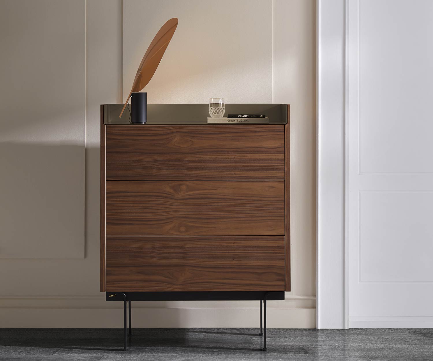 Die elegante Punt Stockholm Design Hochkommode beseitigt ganz gekonnt die Platzprobleme in jedem modernen Ess- oder Wohnzimmer. Der von Designer Mario Ruiz preisgekrönte Schrank überzeugt mit einer offenen Abdeckplatte aus Aluminium, die dem Betrachter durch ihr dünnes Metallfinish verführerisch entgegenglänzt. Außerdem ergänzen drei funktionale und im Alltag sehr praktische Schubladen diese gelungene Kreation.