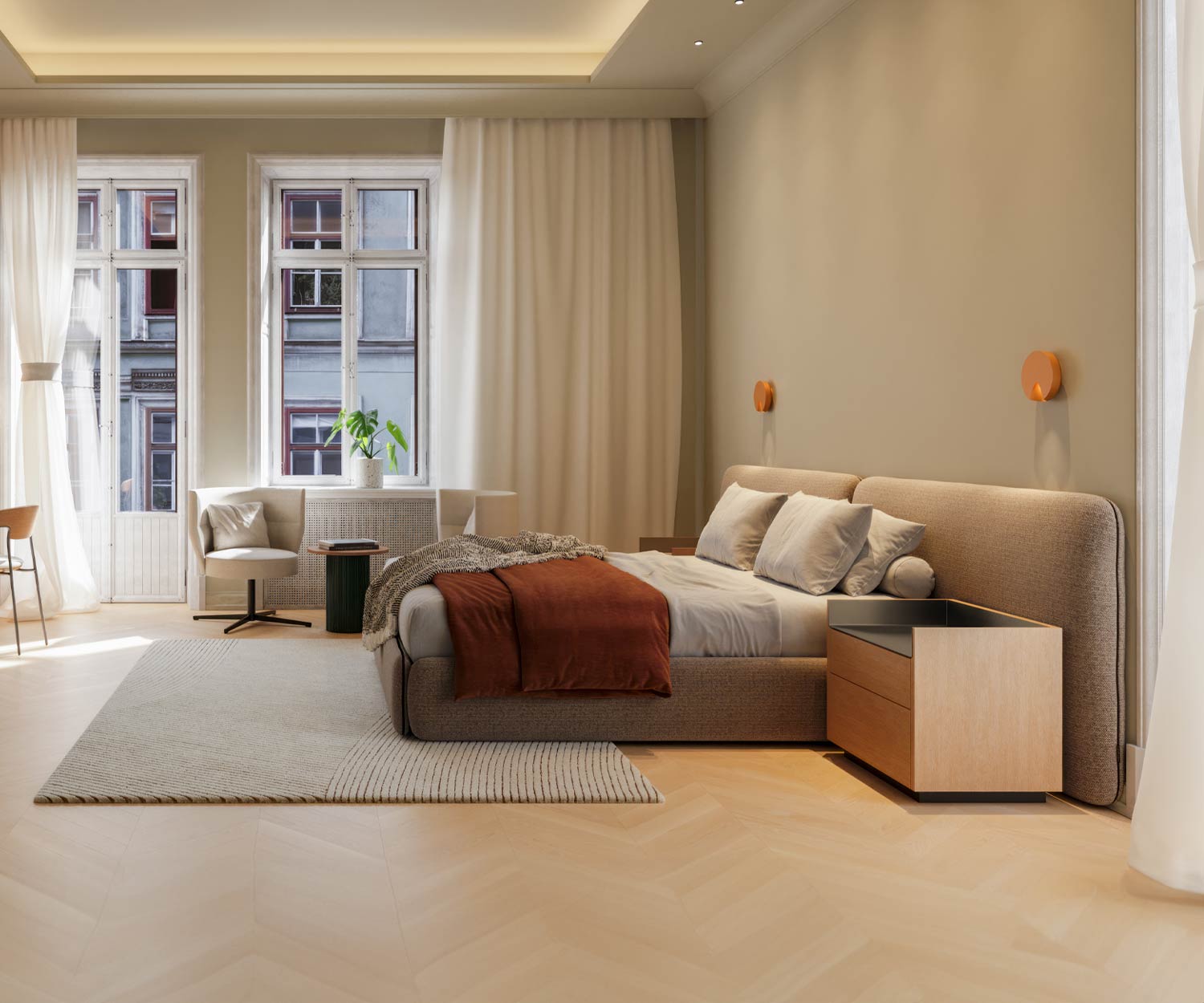 Der von Mario Ruiz entworfene Punt Stockholm Design Nachttisch ist ein kleiner, aber feiner Begleiter ganz exklusiv für ein modernes Schlafzimmer mit Pfiff. Dazu trägt besonders die unglaublich dünne und glänzende Abdeckplatte entscheidend bei. Diese bedeckt den Nachttisch komplett on top und bildet drei nach oben gewölbte Kanten. Der ideale Ablageort für den Lieblings-Krimi, das Smartphone und die Zartbitterschokolade.
