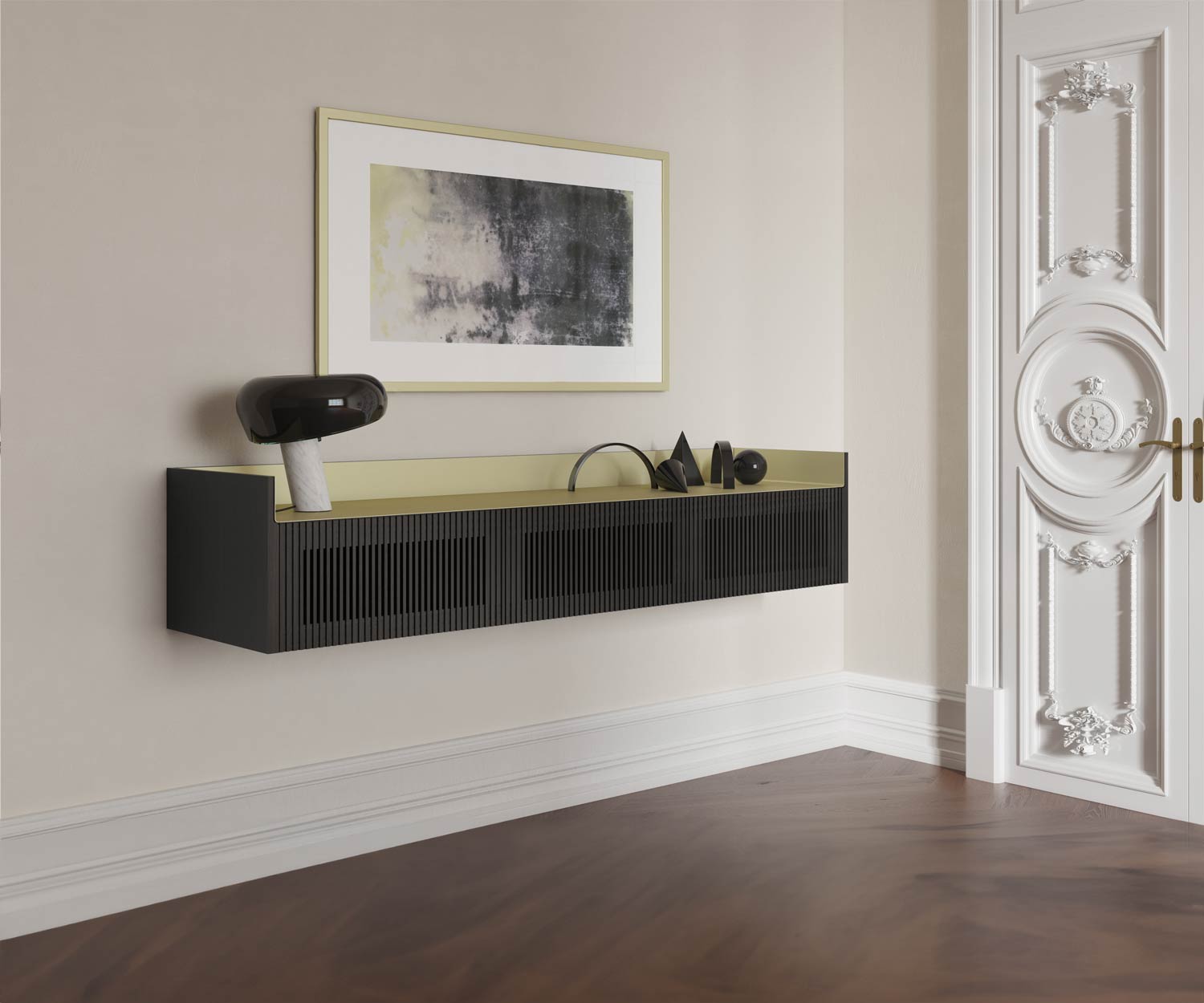 Das Stockholm Wand TV Lowboard ist zur Wandmontage erhältlich. Auf Anfrage kann das Sideboard auch nach Wunsch mit Sockel oder Füßen bestellt werden. Das Stockholm Sideboard überzeugt nicht nur durch ein außergewöhnliches Design, sondern auch durch Ihre Funktion: