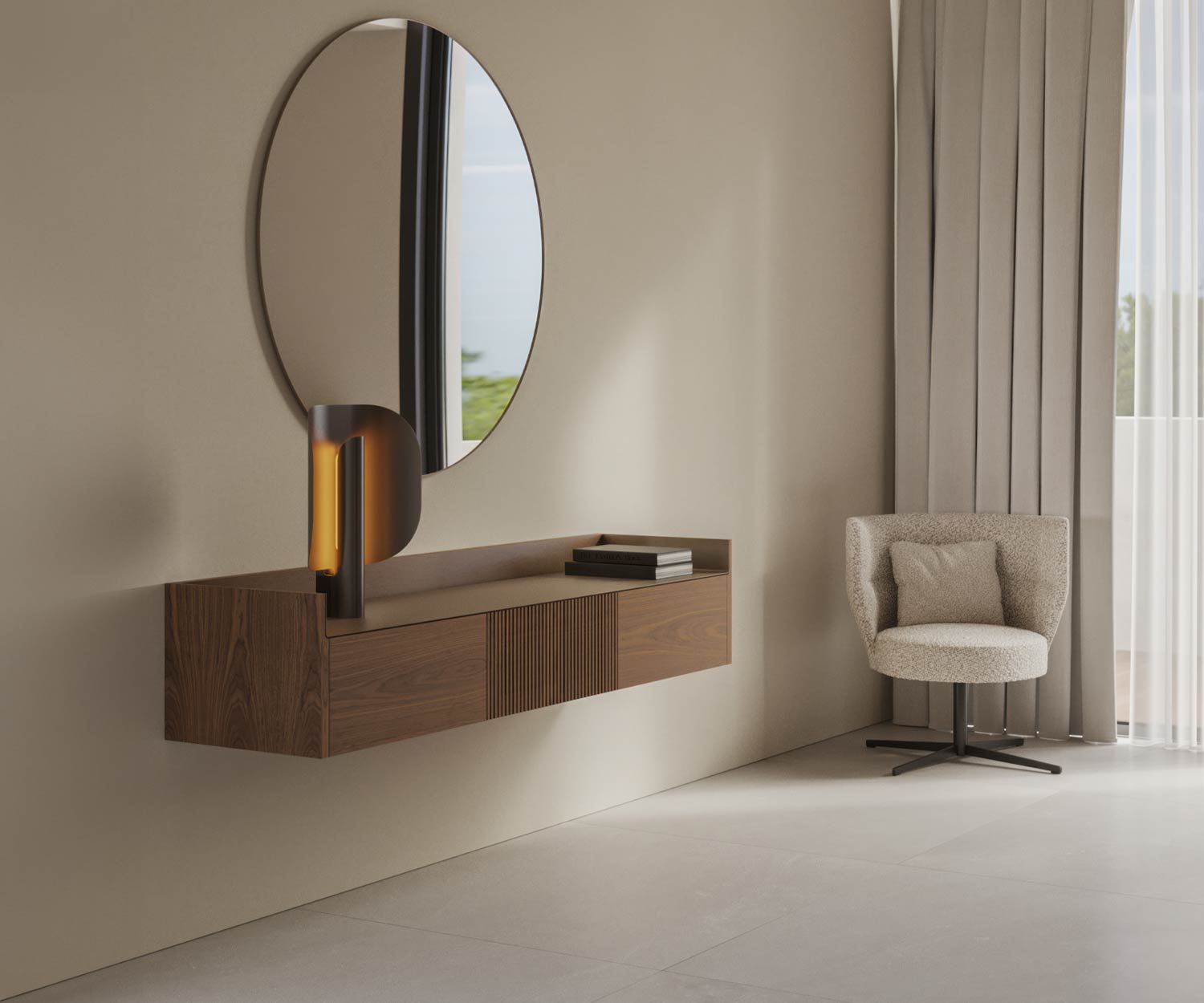 An der Wand montiert, wirkt es zurückhaltend und bringt gleichzeitig eine besondere Note in den Raum.