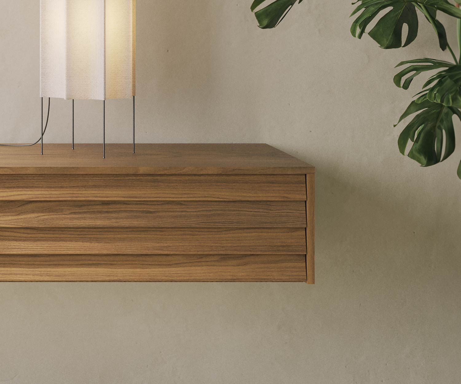 Je nach Bedarf kann jede Ausführung des Punt Sussex Nachttischs - 1 Schublade oder 2 Schubladen - mit flachen 6 cm oder 17 cm und 29 cm hohen Füßen bestellt werden. Der Designer Nachttisch kann auch ganz einfach mithilfe von einem Wandmontageset aufgehängt werden, für mehr Stauraum und ein pflegeleichtes Schlafzimmer. Die Lamellenfront dient gleichzeitig als unsichtbarer Griff und geht flüssig in das Design über. Dank der Hettich-Schienen aus Deutschland laufen die Schubladen besonders leise und ziehen sich immer automatisch zu (Soft-Close Dämpfungstechnik).