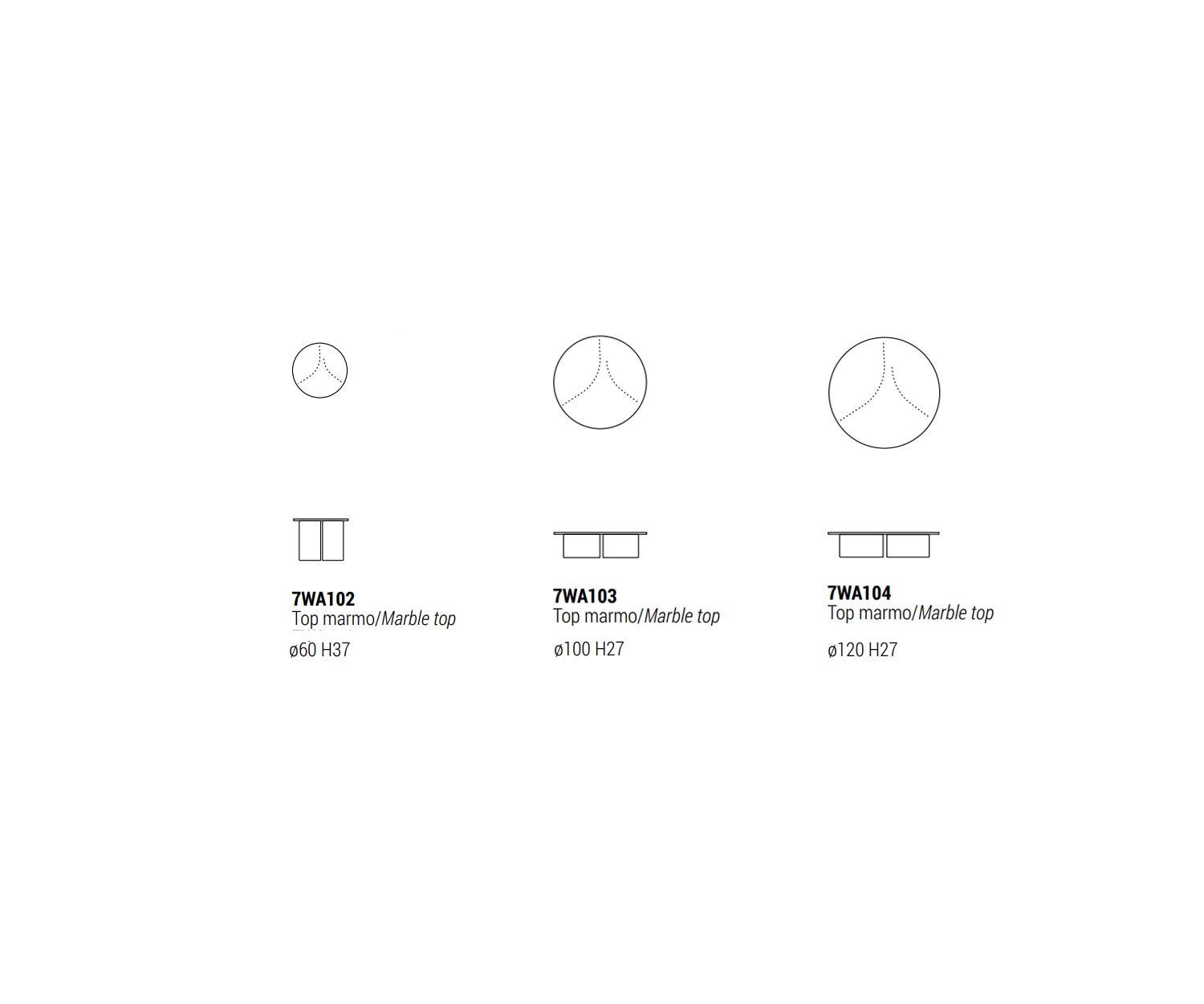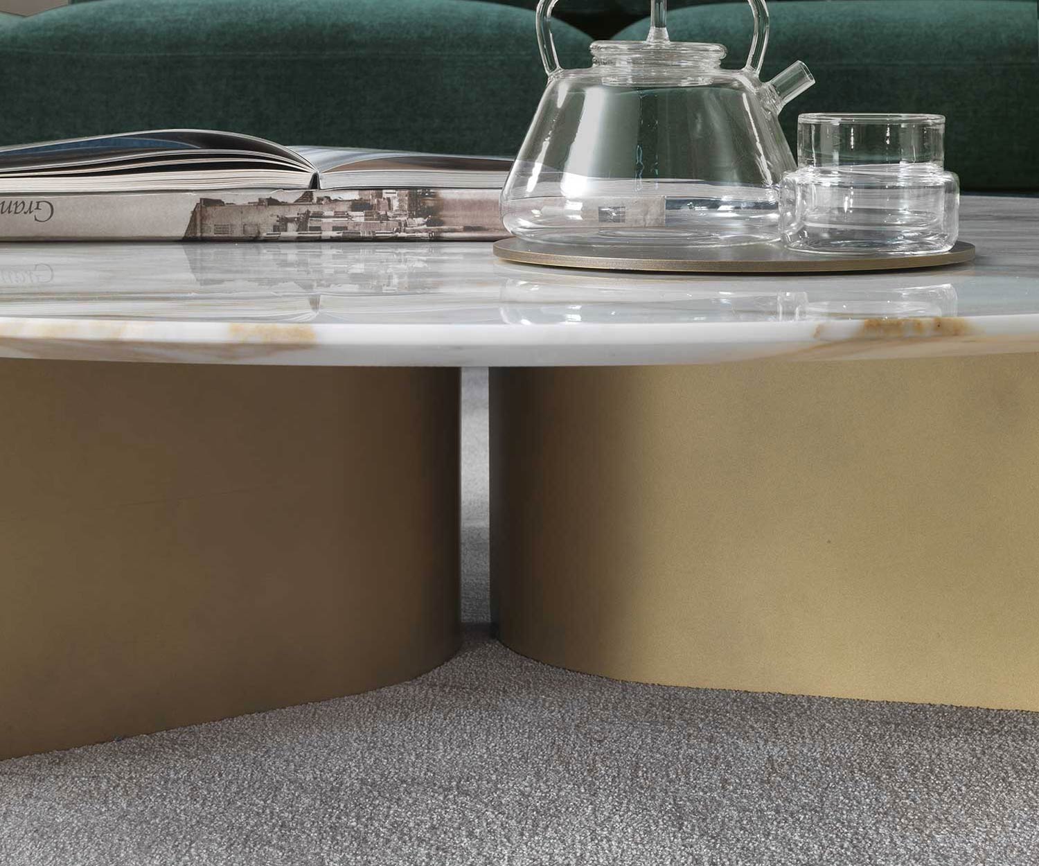 Die Tischplatte des Marelli Wave Tisches besteht aus hochwertigem italienischem Marmor (Carrara oder Arabescato).
