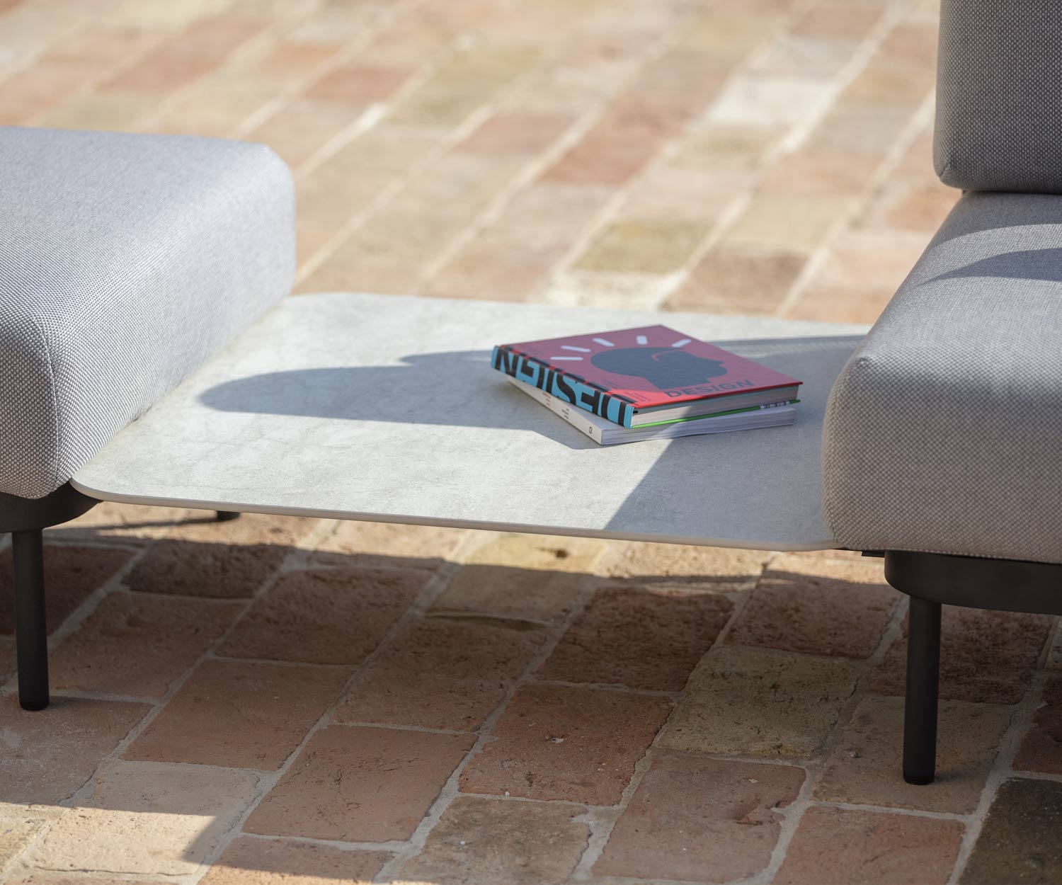 Auf Anfrage ist auch ein Keramik Beistelltisch zwischen den Modulen möglich. Bitte kontaktieren Sie uns für eine indviduelle Planung.